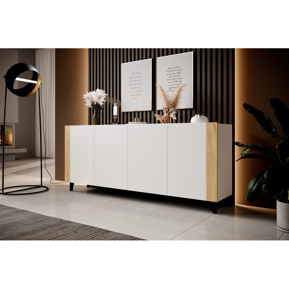 FARO chest of drawers 200x42x82 white matt + oak craft