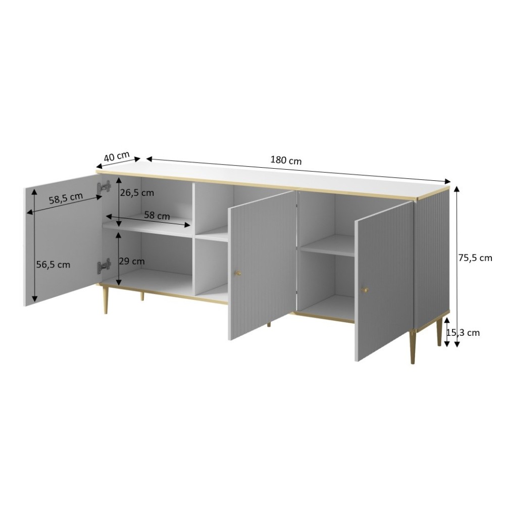 GLAMOUR chest 180x40x75.5 cm black matt + gold