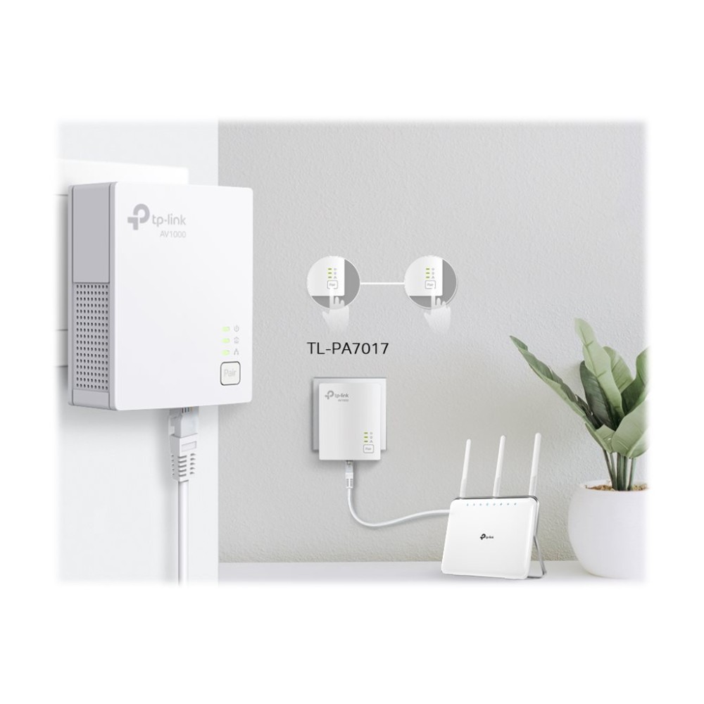 TP-LINK | Gigabit Powerline Starter Kit | TL-PA7017 KIT | 10/100/1000 Mbit/s | Ethernet LAN (RJ-45) ports 1 | No Wi-Fi | Data transfer rate (max) 1000 Mbit/s | Extra socket