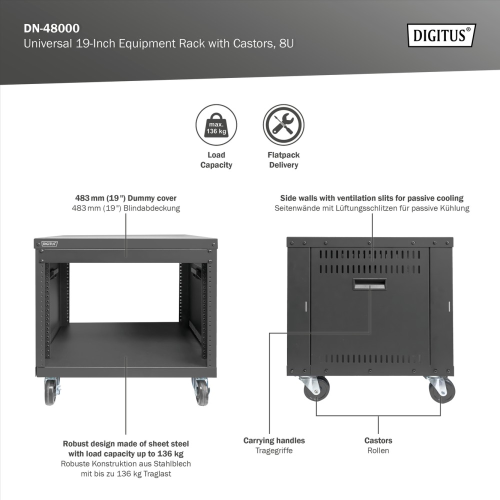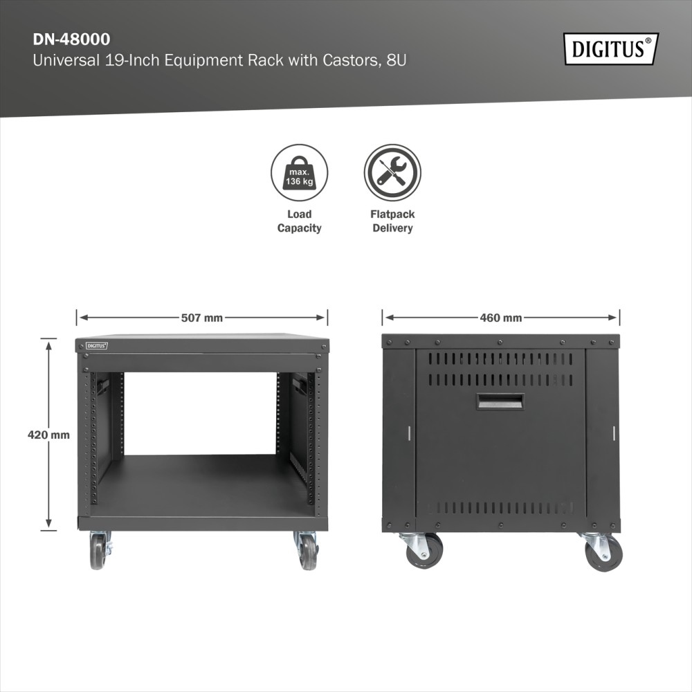 Digitus Universal 19-Inch Equipment Rack with Castors, 8U | DN-48000