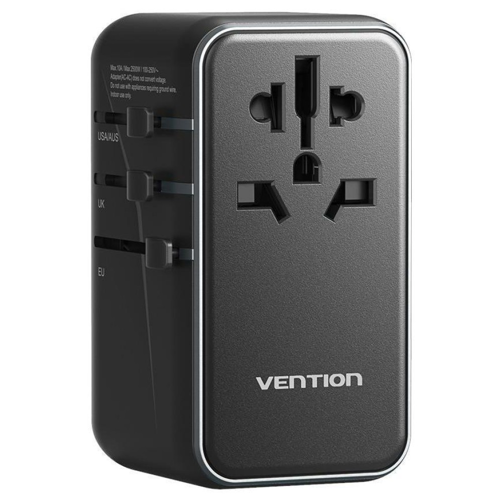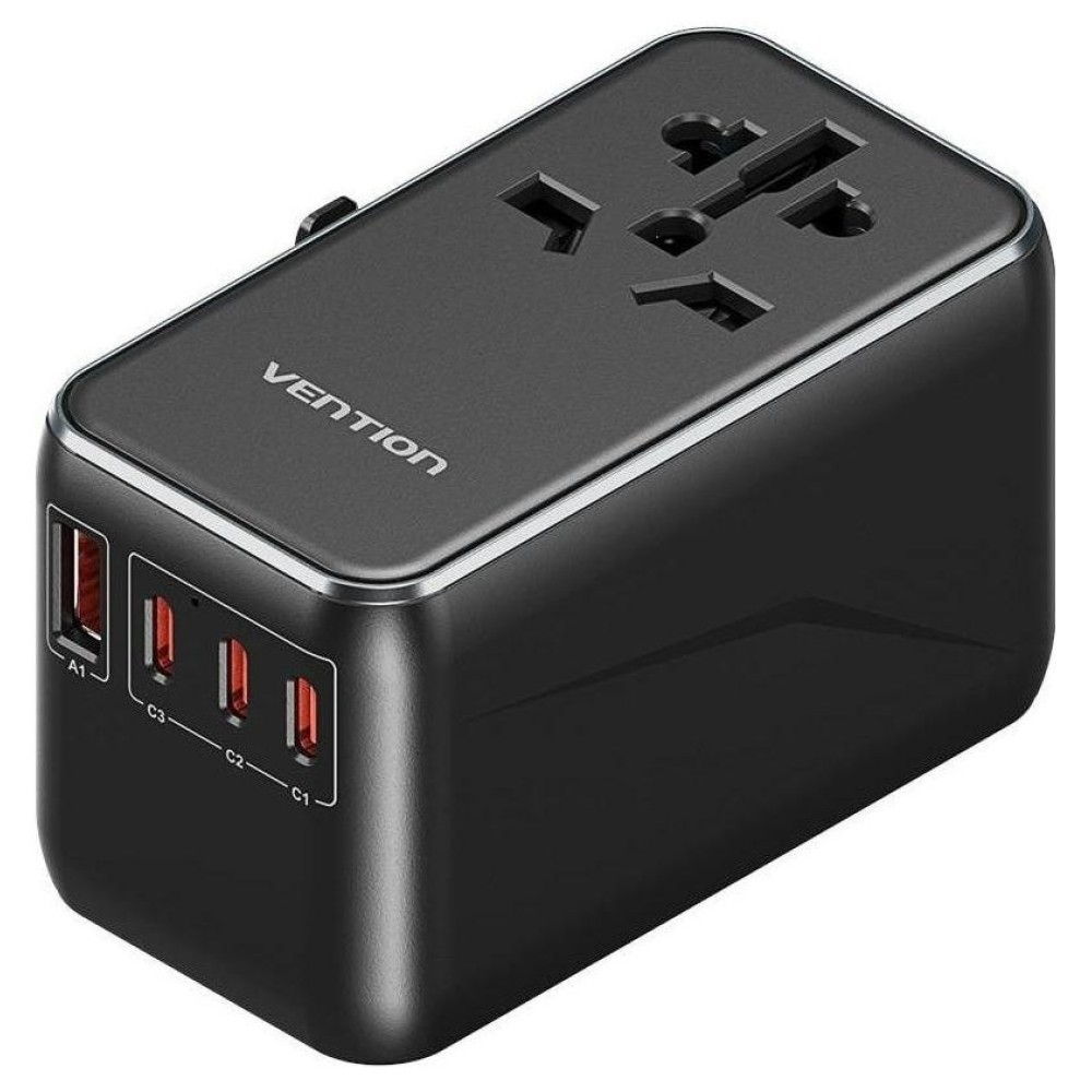 Uniwersalny adapter podróżny z ładowarką Vention 100W GaN 1x USB-A 3x USB-C czarny