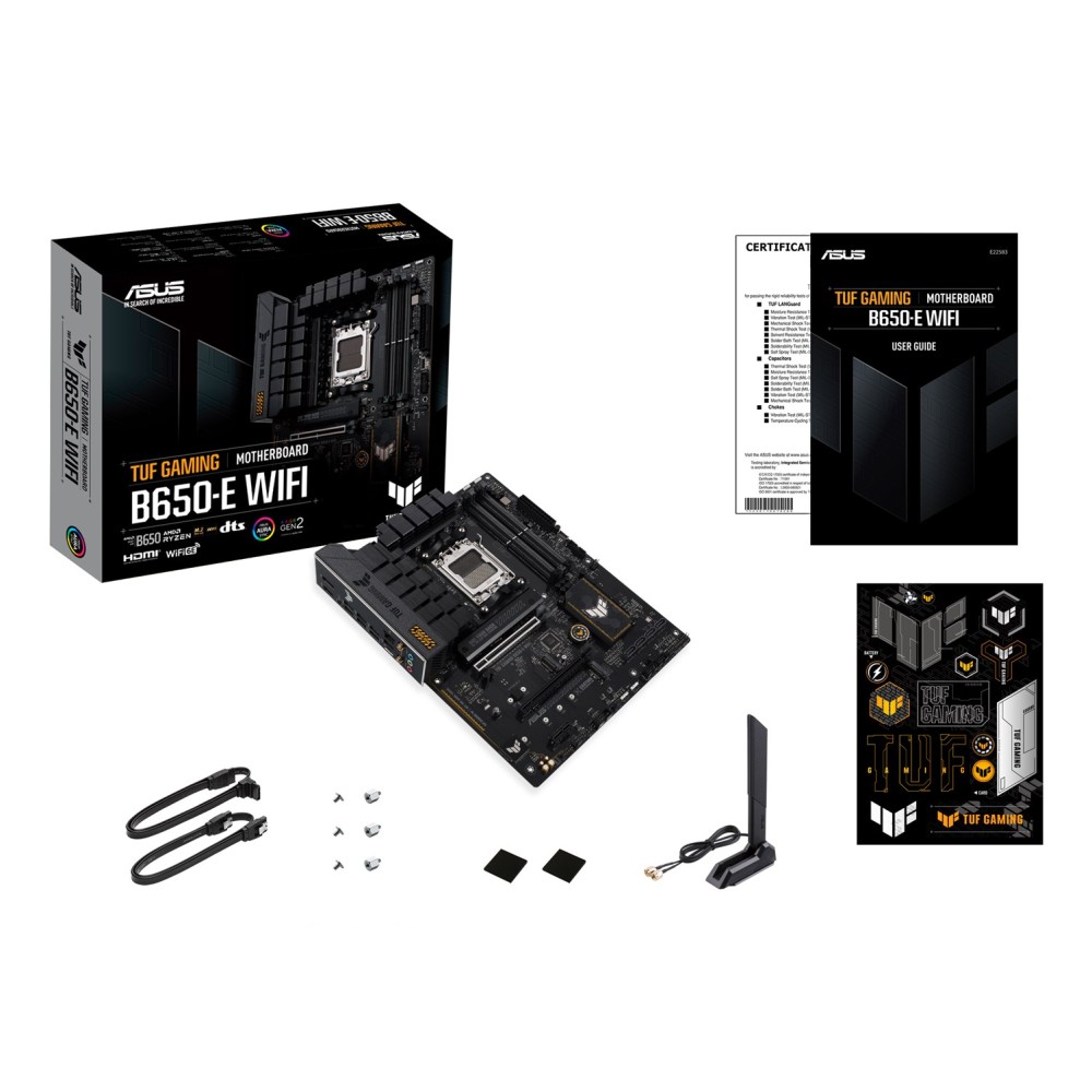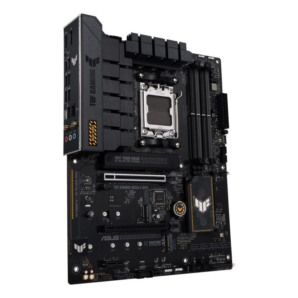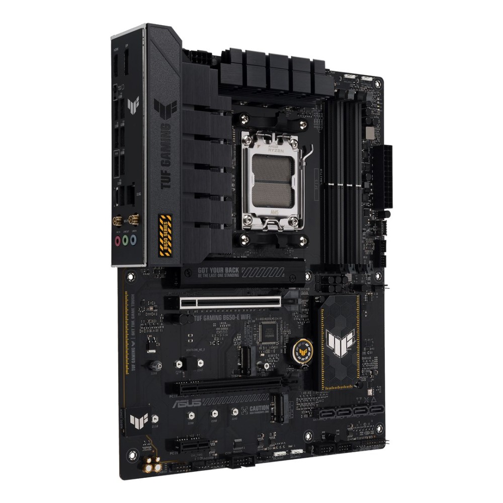 | Description | ASUS TUF GAMING B650-E WIFI takes all the essential elements of the latest AM5 Socket for AMD Ryzen™ Desktop Processors and combines them with game-ready features and proven durability. Engineered with military-grade components, an upgraded power solution and a comprehensive cooling system, this motherboard goes beyond expectations with rock-solid and stable performance for marathon gaming. TUF GAMING motherboards also undergo rigorous endurance testing to ensure that they can handle conditions where others may fail. Aesthetically, this model incorporates rugged off-black and geometric design elements to reflect the dependability and stability that defines the TUF GAMING series. |