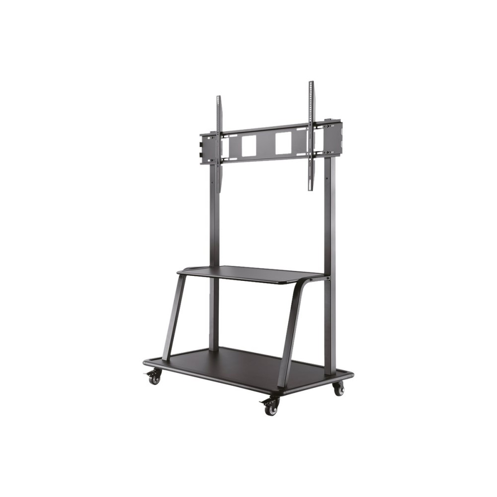 Description The Neomounts by Newstar floor stand, model NS-M4000BLACK is a mobile floor stand for flat screens up to 105" (267 cm). This mobile stand is a great choice for space saving placement or when wall-, ceiling mounting or desk placement is not an option. This cart stretches your investment by serving a variety of projection needs by sharing a large display over multiple rooms. Get optimal positioning for both standing and seated audiences, in any application, in any part of your location. The mount is manually height adjustable.  Neomounts by Newstars' floor stand, NS-M4000BLACK holds your TV, AV equipment and even hides your cables. The casters allow the stand to move it to where you need it. Easily roll this cart through doorways and over thresholds. The floor stand also comes with four leveling feet.  Neomounts by Newstar NS-M4000BLACK is suitable for screens up to 105" (267 cm). The weight capacity of this product is 150 kg each screen. The stand is suitable for screens that meet VESA hole pattern 200x200 to 1000x600mm.  All installation material is included with the product.