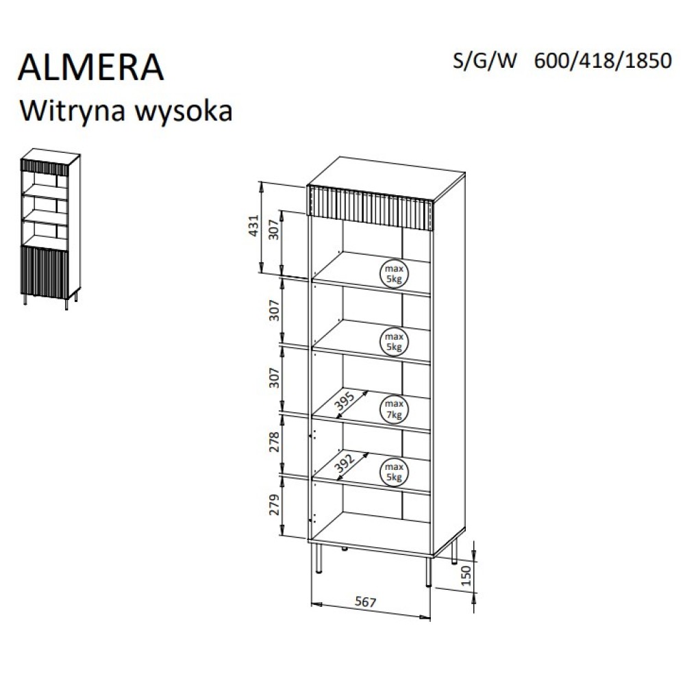 | Height | 1850 mm |