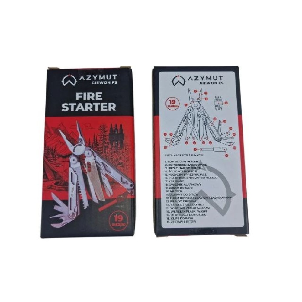 Multitool AZYMUT Giewon FS - Fire Starter - 19 narzędzi - krzesiwo + gwizdek + kabura do pasa (H2038A)