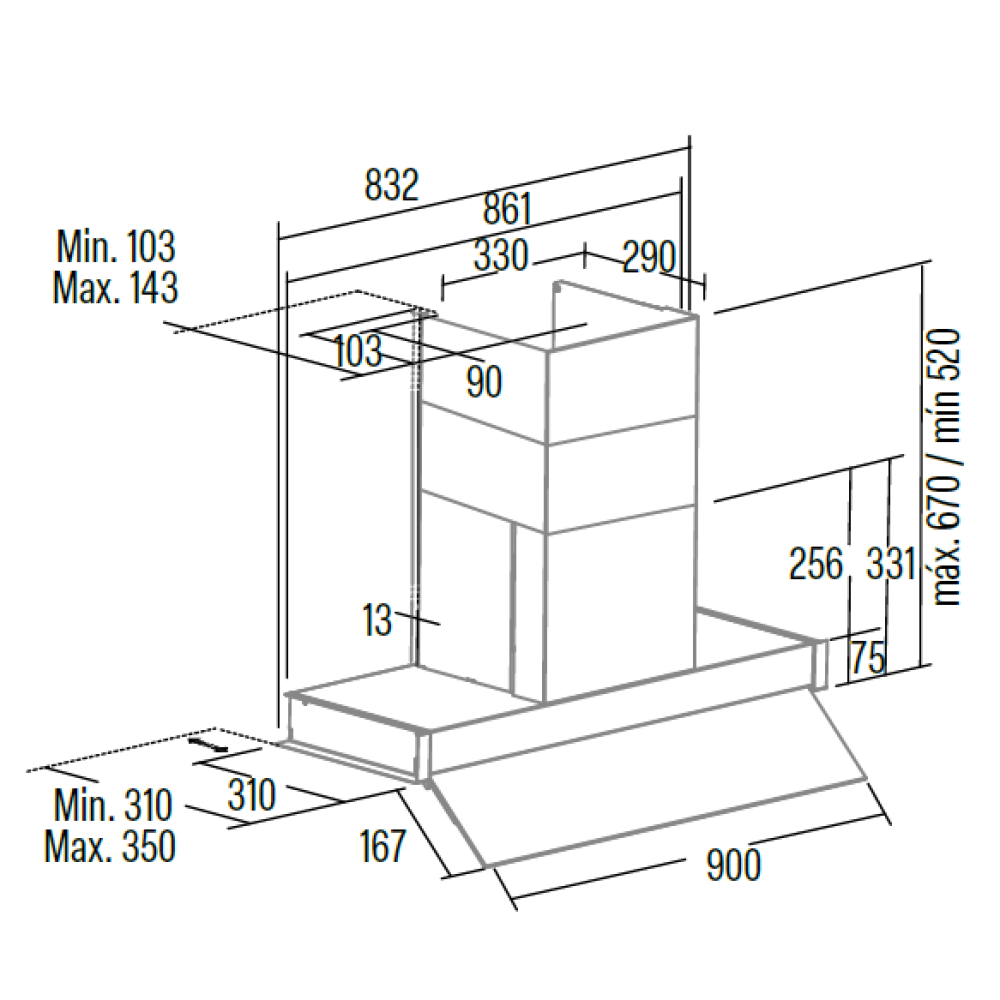 | Minimum distance from electric hob | 55 |