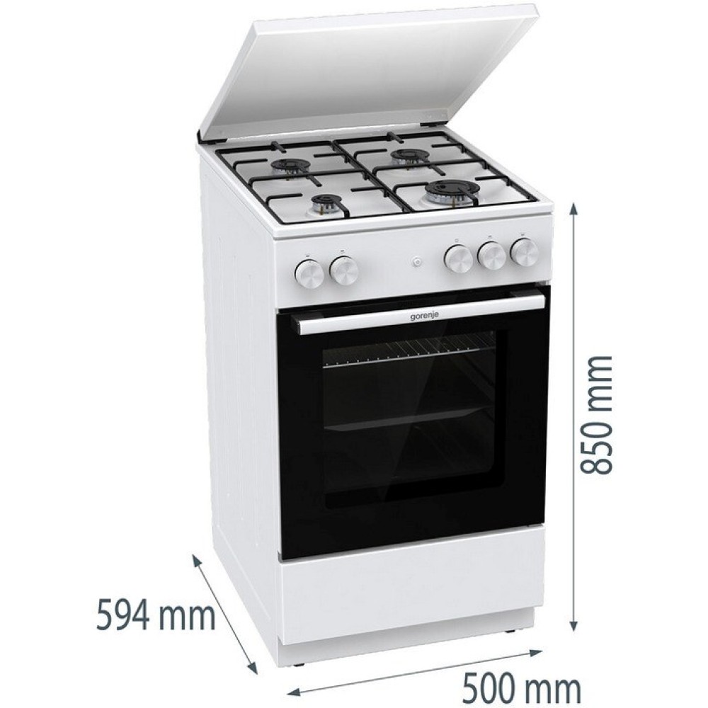 Gorenje Cooker | GG5A14WJ | Hob type Gas | Oven type Gas | White | Width 50 cm | Depth 59.4 cm | 70 L