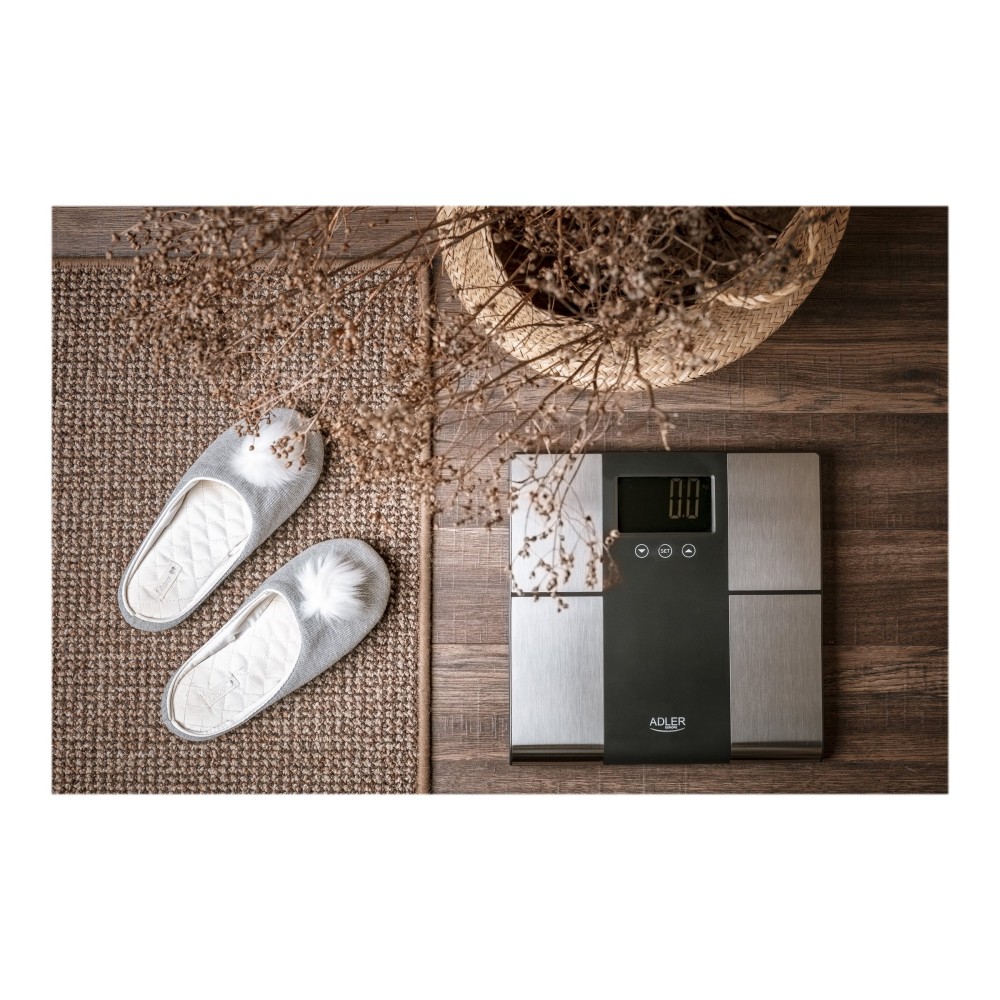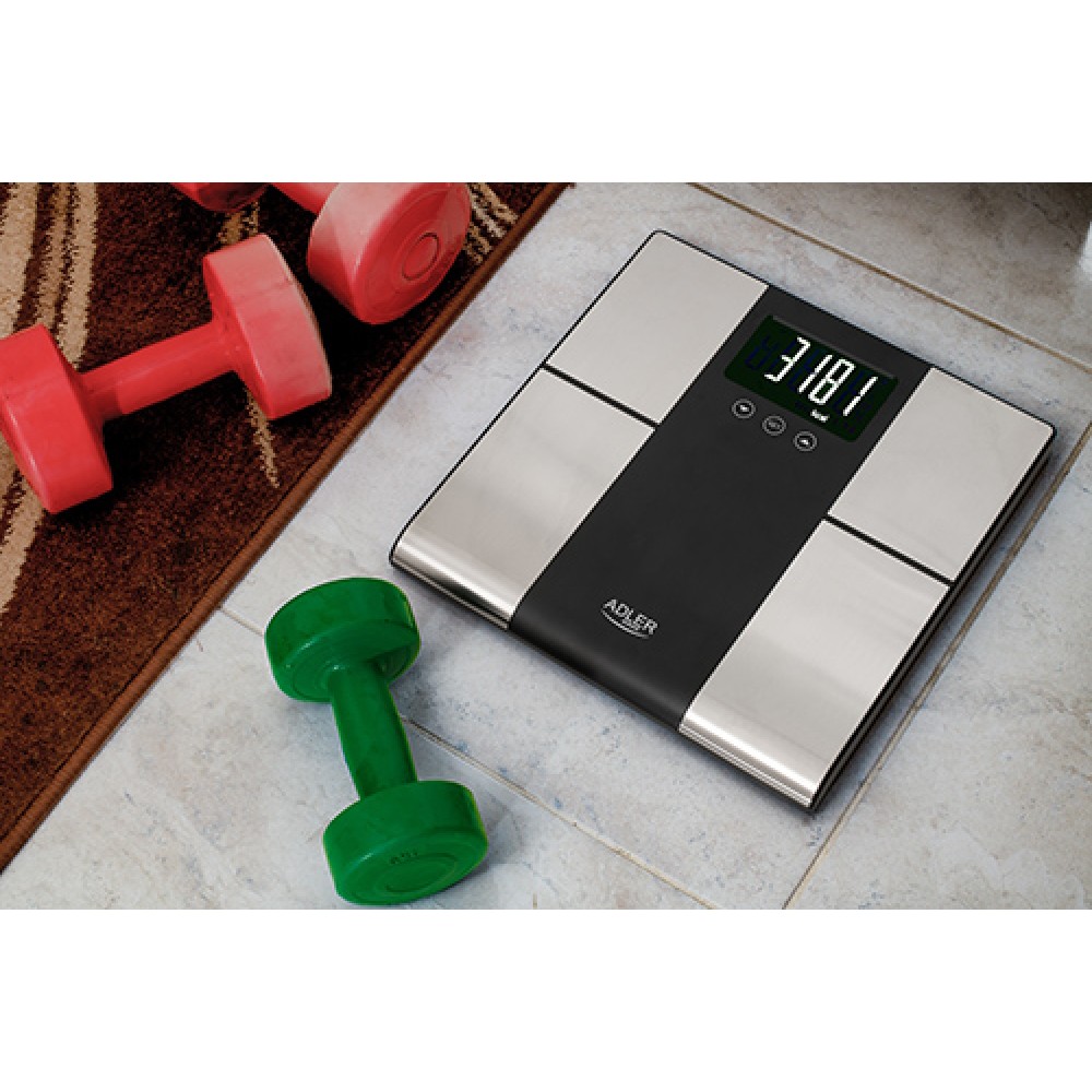 Adler | Bathroom scale with analyzer | AD 8165 | Maximum weight (capacity) 225 kg | Accuracy 100 g | Body Mass Index (BMI) measuring | Stainless steel/Black