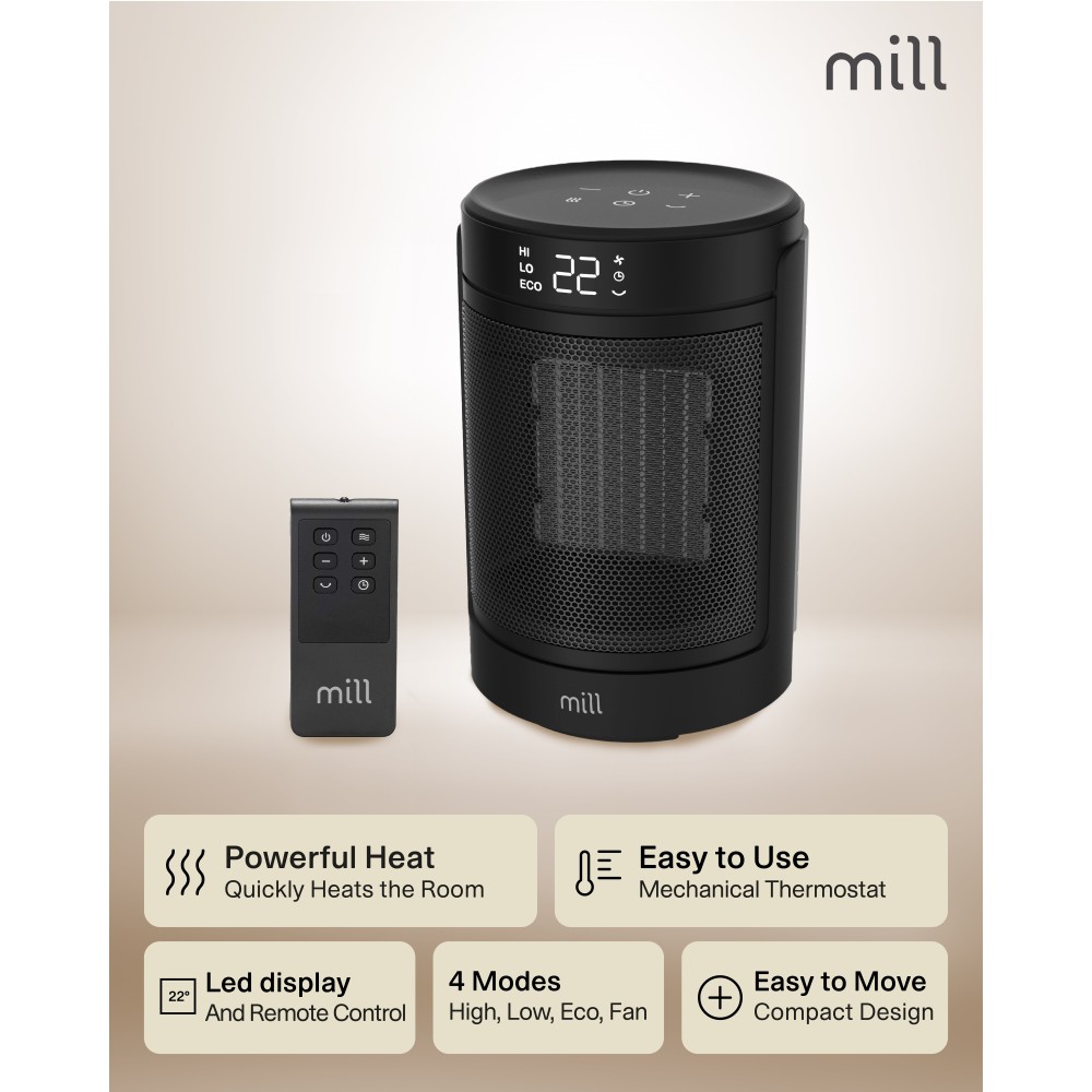 Mill FH1500BLACK | Ceramic fan heater | 1500 W | Suitable for rooms up to 22 m² | Black
