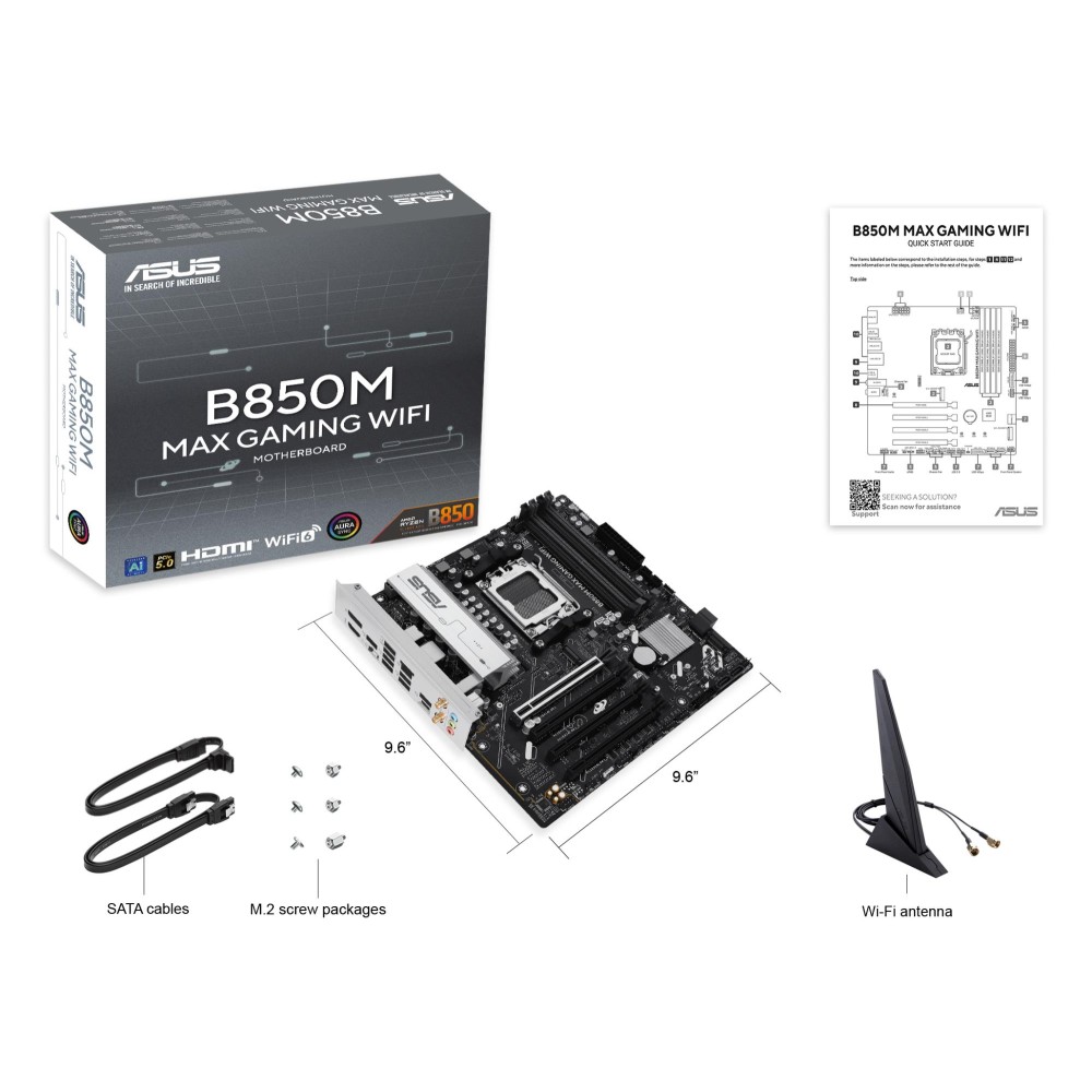| Description | B850M MAX GAMING WIFI B850M MAX GAMING WIFI motherboards are expertly engineered to unleash the full potential of AMD Ryzen™ 9000 series processors. The B850M MAX GAMING WIFI motherboard provides users and PC DIY builders with a range of performance optimizations via intuitive software and firmware features. It’s designed to be Advanced AI PC-ready, offering the power and connectivity needed for demanding AI applications. |