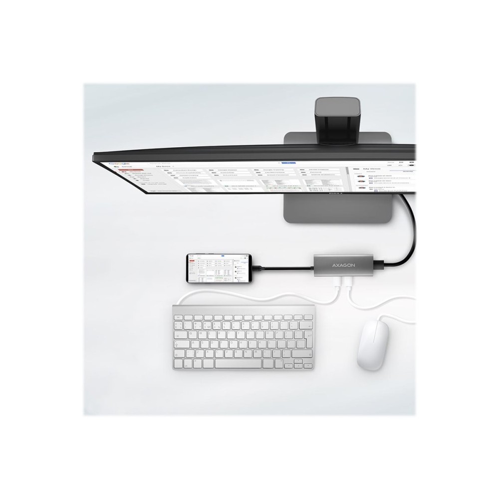 Description The multi-port USB-C 10Gbps AXAGON HMC-5G2 SPEEDSTER hub 5in1 expands your laptop, computer or phone with five ports. Via the double-sided USB-C connector, you can quickly and easily connect a monitor and three USB devices to the computer at the same time. You also get the possibility to supply laptop using Power Delivery technology at the same time. The port replicator will thus provide you with a simple and compact 5-in-1 docking station not only for Windows laptops but also for Apple laptops such as MacBook Air or MacBook Pro.