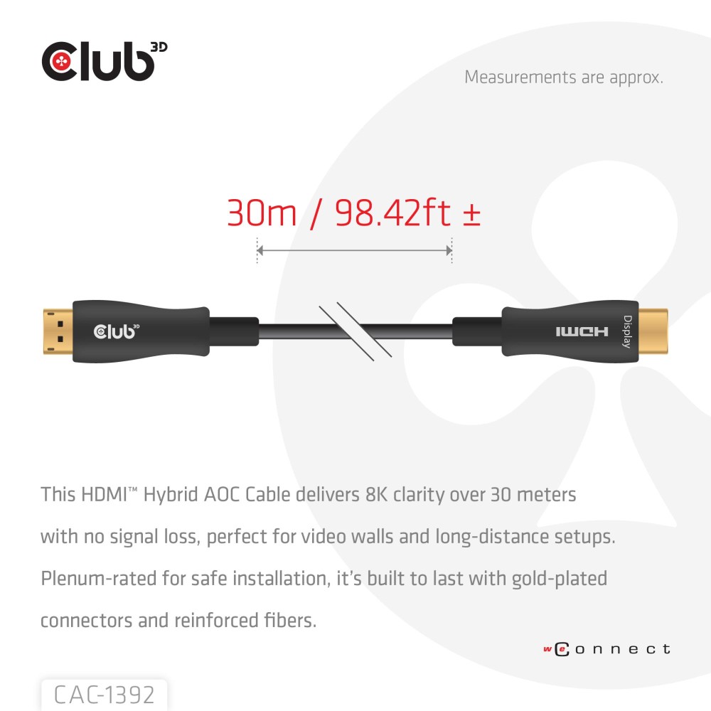 Vendor Homepage www.club-3d.com/en/detail/2693/hdmit_hybrid_aoc_cable_8k60hz-4k120hz_30m_-_98.42_ft/