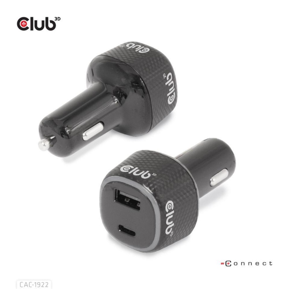 The Club 3D CAC-1922 is a high-performance and fashionable design max. 63Watt Car charger with QC3.0 and Power Delivery (PD) support. With this charger, it is feasible for you to charge any devices (eg: digital cameras, PDAs, notebook computer, mobile phones, USB accessories) with your car when it is in necessity. It is equipped with two USB connectors (one USB Type-C connector and one USB Type-A connector) for power. This product allows two devices to be charged at the same time, and the product provides the maximum output of 63 watts. The USB-C port is specially designed for Type-C supported devices. To distinguish between QC and PD charging, the LED light turns blue for Quick Charge(QC) or Red for Power Delivery(PD) mode.