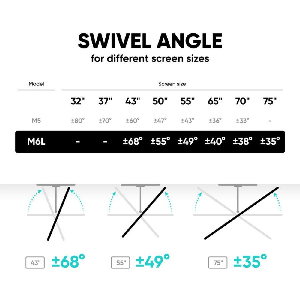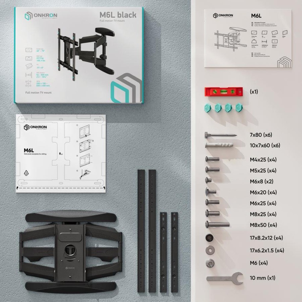 | Description | ONKRON Tilting and swiveling Wall Mount for 40"- 75" screen, max 45 kg, VESA up to 600x400 |