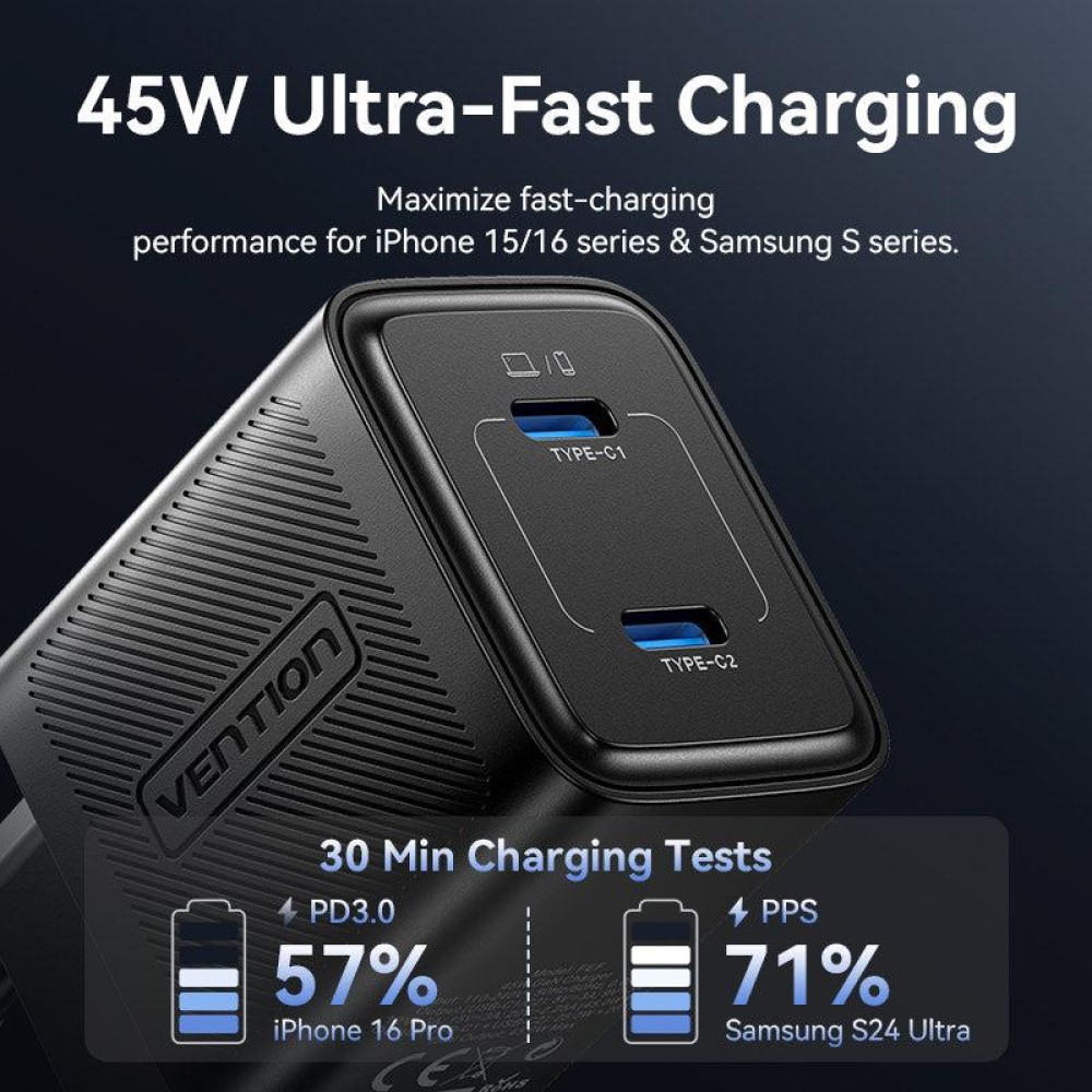 MOBILE CHARGER WALL 45W USB-C/2P WHITE FEFW0-EU VENTION