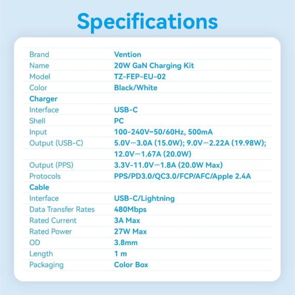 | Vendor Homepage | https://ventiontech.com/products/1-port-usb-c-gan-charger-20w-with-usb-c-to-usb-c-cable-1?variant=45726232281254 |