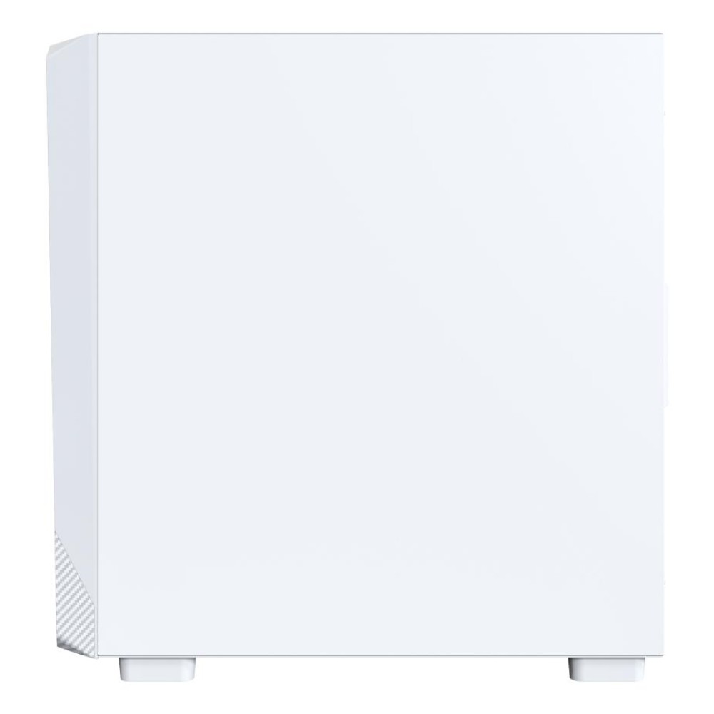 Передняя панель с карбоновым принтом придает корпусу индивидуальность и современный вид. Белый цвет в сочетании с плавными линиями и яркой ARGB-подсветкой создает эффектный акцент в любом интерьере — от домашнего игрового уголка до профессиональной студии.