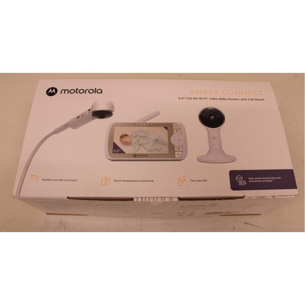 SALE OUT. Motorola VM65X CONNECT 5.0" Full HD Wi-Fi Video Baby Monitor with Crib Mount, White/Gold | Motorola Full HD Wi-Fi Video Baby Monitor with Crib Mount | VM65X CONNECT 5.0" | 5.0" LCD colour display with 480 x 272 resolution; Lullabies; Room temper