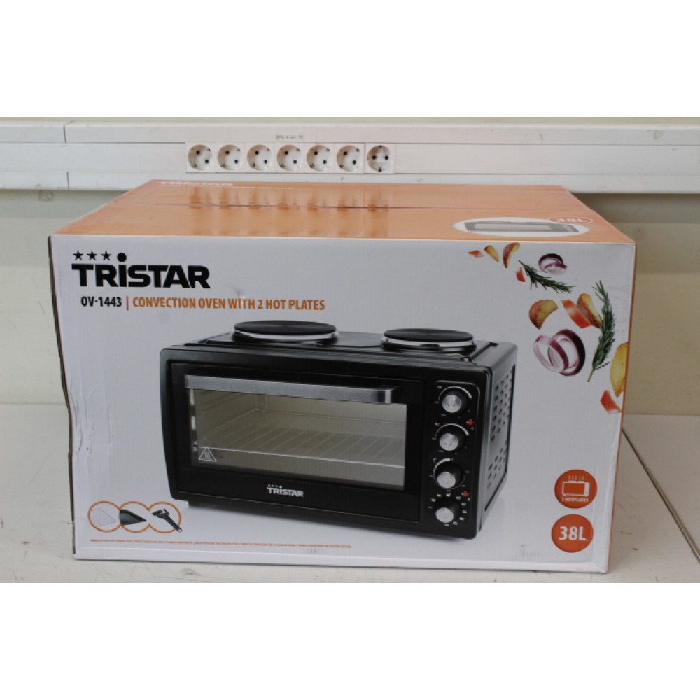 SALE OUT. Tristar OV-1443 Convection oven with 2 hot plates | Tristar | Electric mini oven | OV-1443 | Integrated timer | 38 L | Table top | 3100 W | Black | DAMAGED PACKAGING, DENT ON SIDE