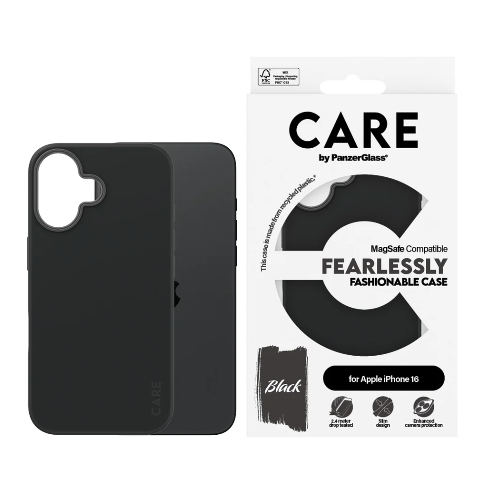 CARE Fashionable Case | Back cover | Apple | iPhone 16 | Recycled plastic | Black | MagSafe