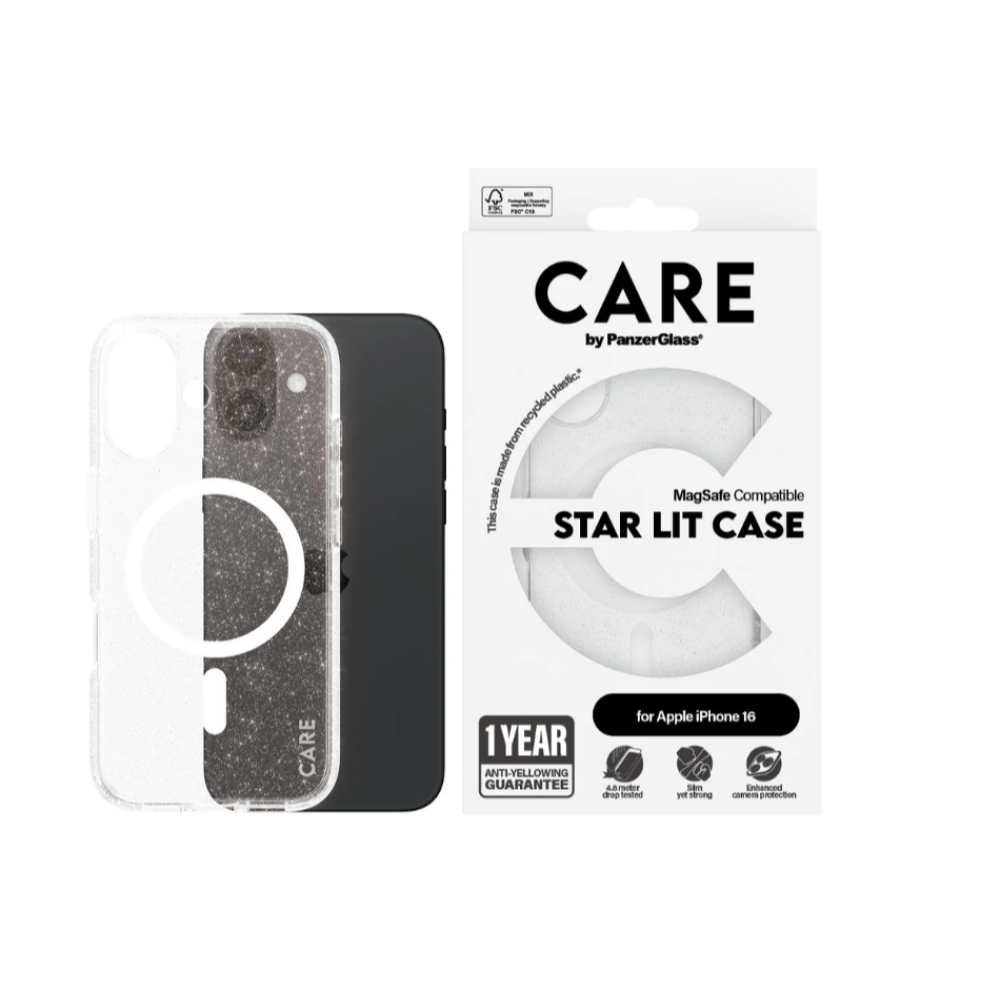 CARE Flagship Case | Back cover | Apple | iPhone 16 | Recycled plastic | White | Urban Combat Star Lit with MagSafe
