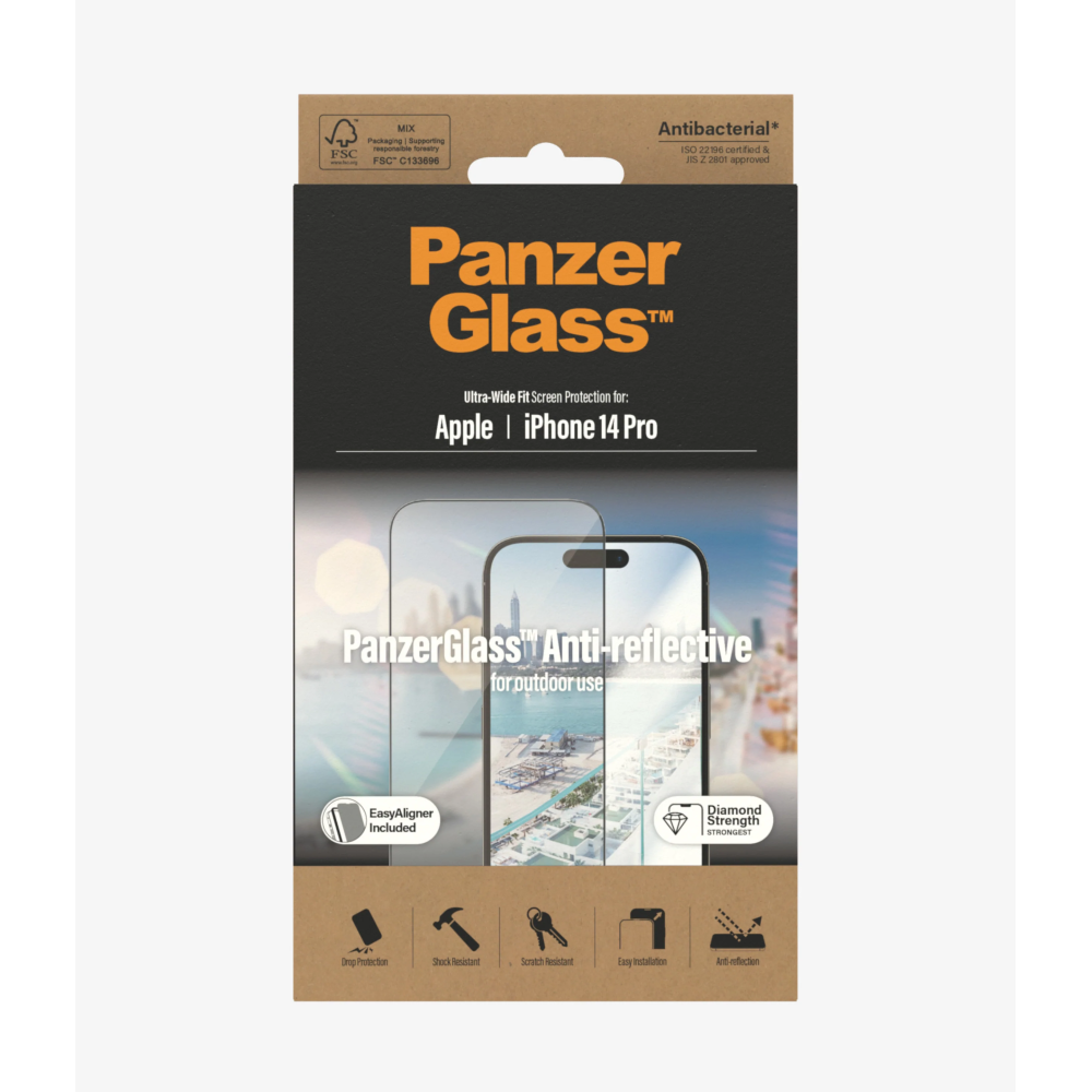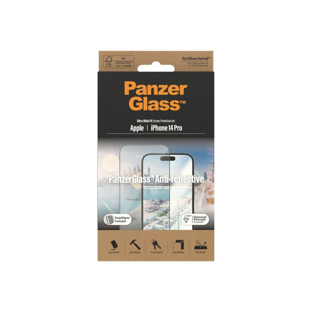 PanzerGlass | Screen protector | Apple | iPhone 14 Pro | Glass | Clear | Ultra-Wide Fit; Easy installation; Privacy Filter; Fingerprint resistant | Anti-Reflective