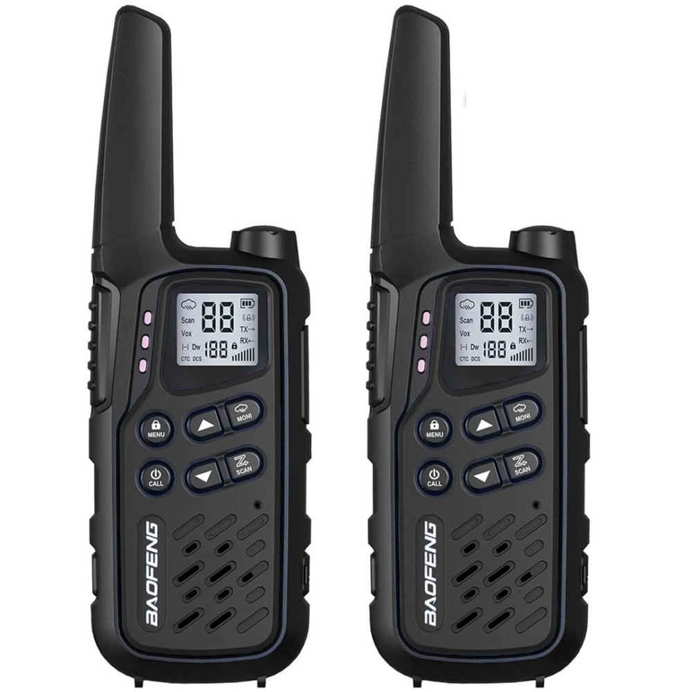 2x PMR Radio Baofeng BF-T25,2x 3,7V 1400mAh battery, 2x PTT-1,1x AC adapter (EU) 230V/USB, 1x USB charging cable, 2x lanyard |