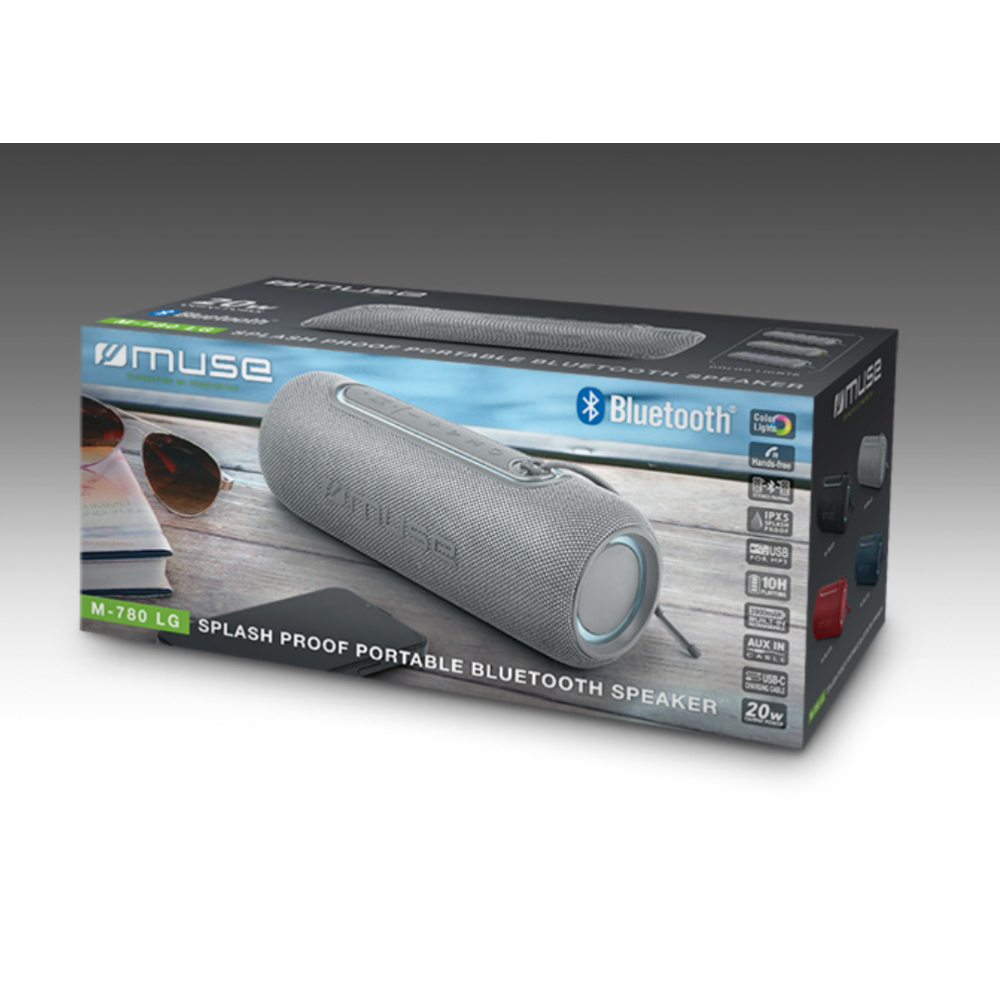 | Package content | 1 x Muse Splash proof Portable Bluetooth Speaker; 1 x USB-C for charging the built-in battery |