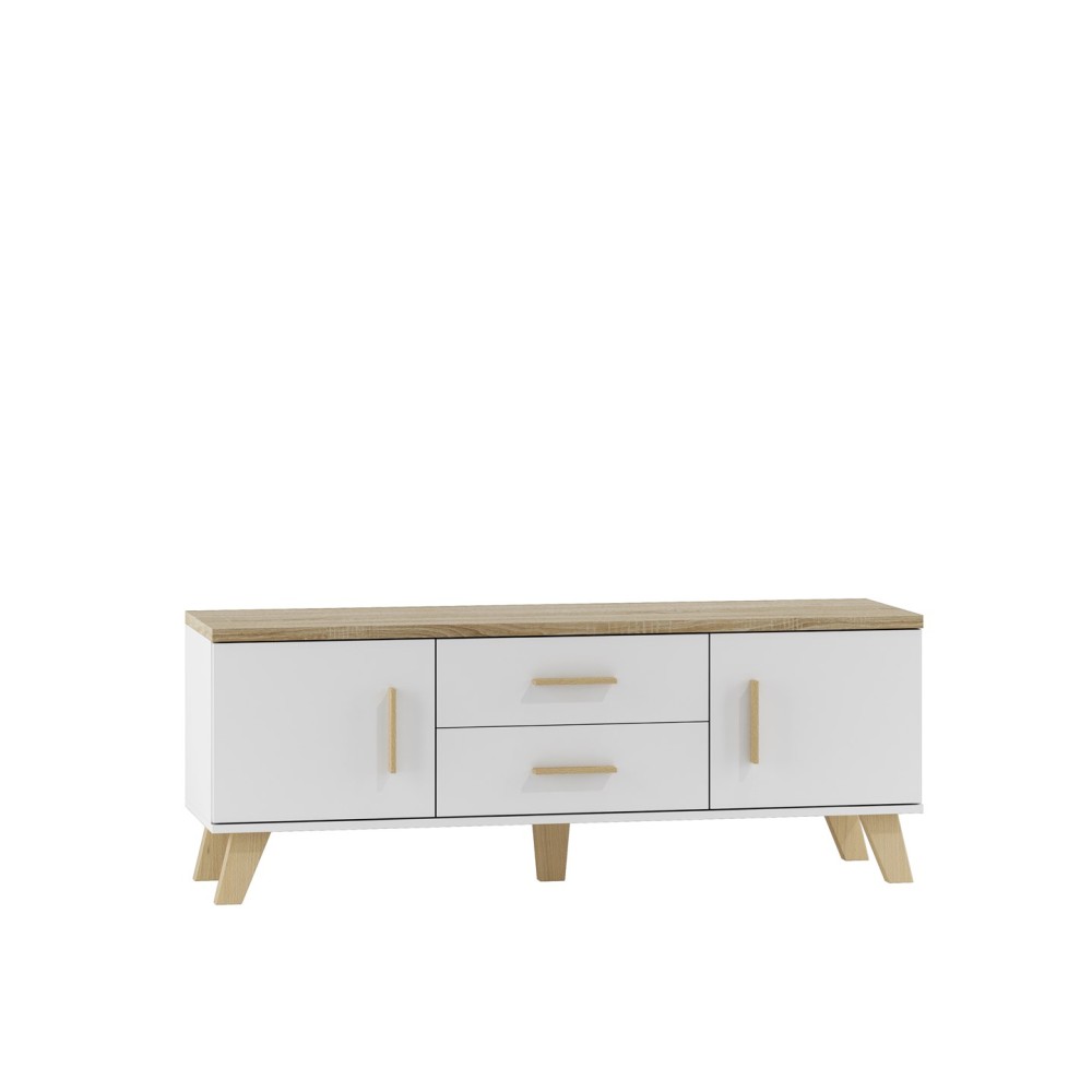 Two fronts open to the side, Legs and handles: wood coloured with sonoma mat oak, Self-assembly furniture, Table top: 25mm chipboard in oak sonoma matt, It is possible to buy LED cabinet lighting., Body and fronts: white diamond matt chipboard |