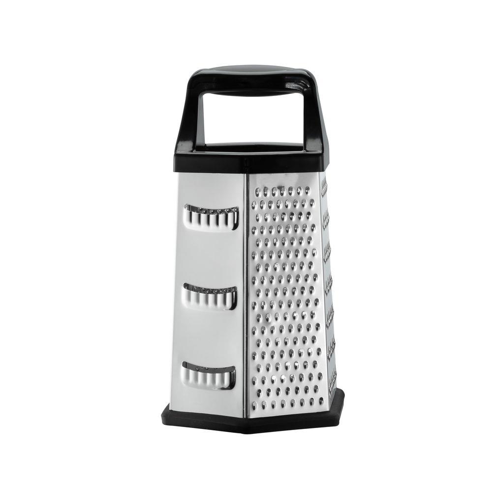 | Description | Grater with container, 6 sides. Solidly constructed, with rigid sides and a base that won’t easily slide out from under you, Sham graters will provide all the flakes, shreds, and shards you’ll ever need. Each side has a different size grating surface which grates evenly and effortlessly across its entire perforated surface. The grater comes with a detachable container to avoid extra mess as it effectively catches what you are shredding, slicing, and zesting. |