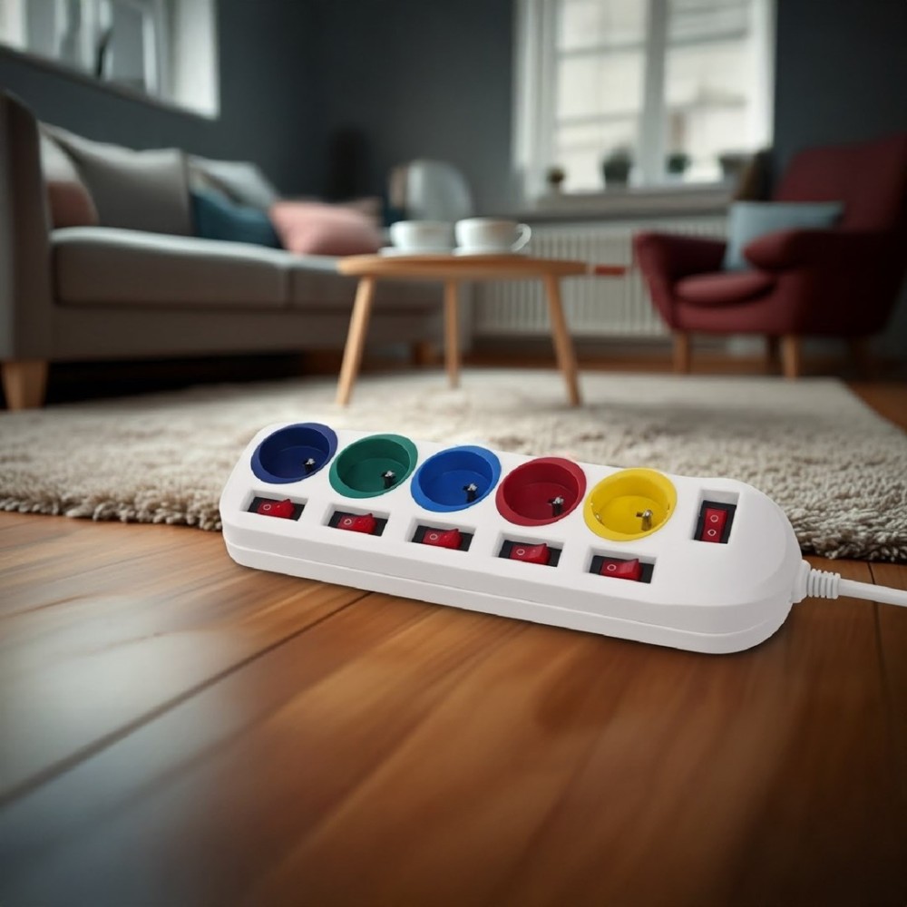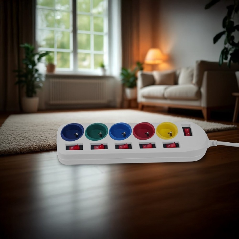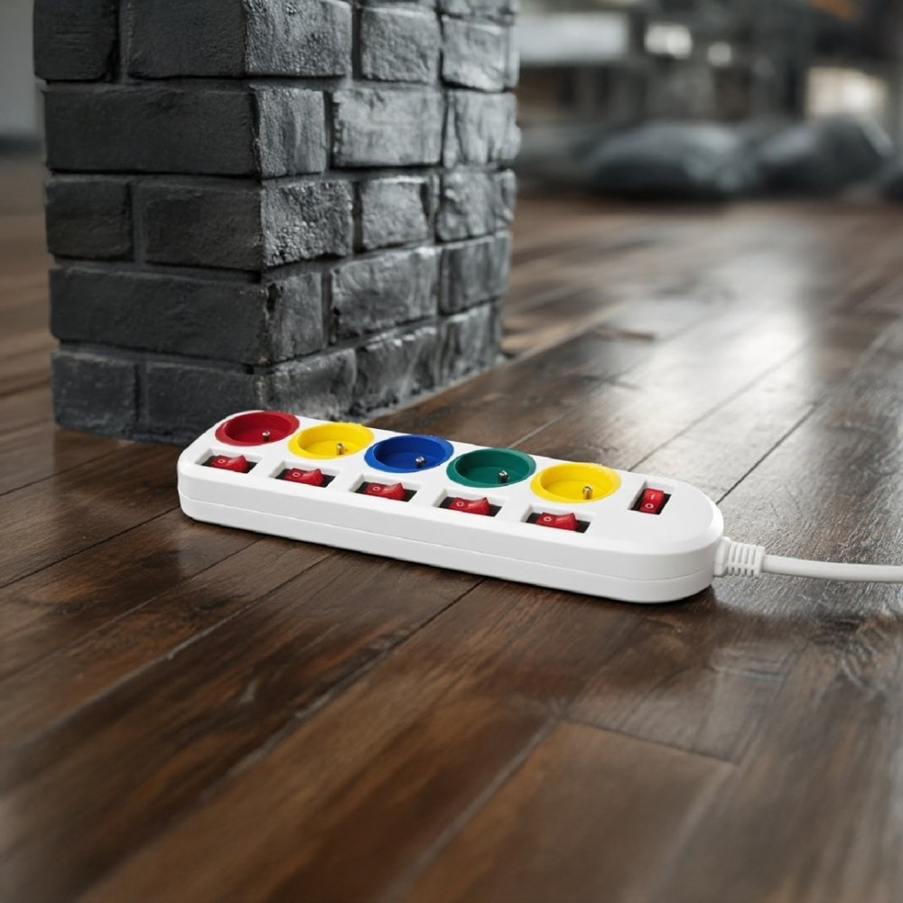 Maclean power strip, 5 socket extension cable, with switches, 250VAC/10A, 1.5m, MCE204 M/W