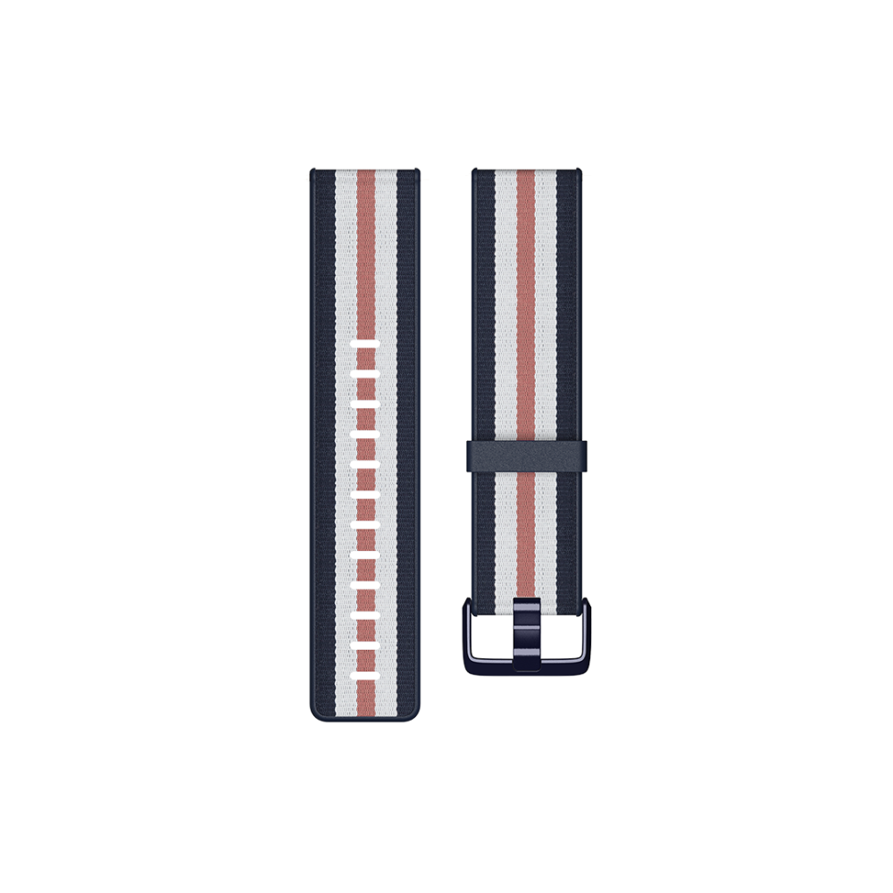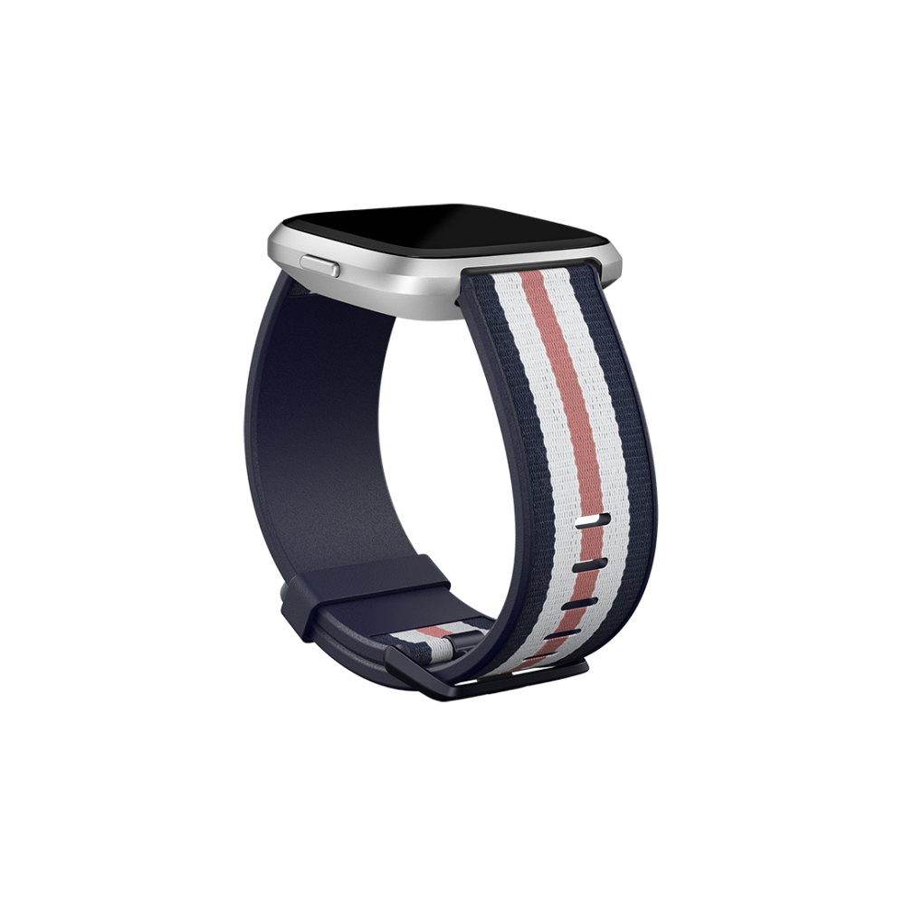 Fitbit | Versa-Lite Woven Hybrid Band, large, navy/pink | The Fitbit Versa woven hybrid band is made of polyester woven material on top and fluoroelastomer material on the bottom with an aluminium buckle. | The Fitbit Versa woven hybrid band is not water