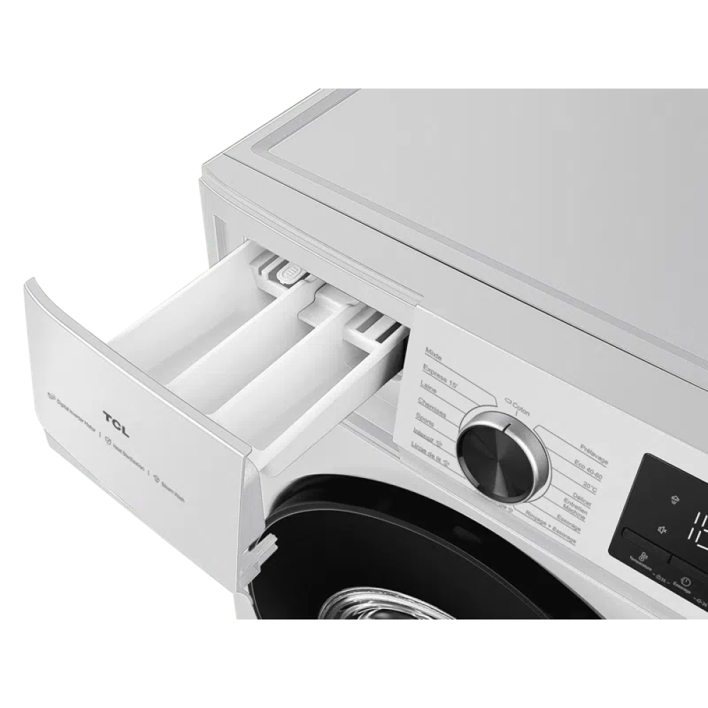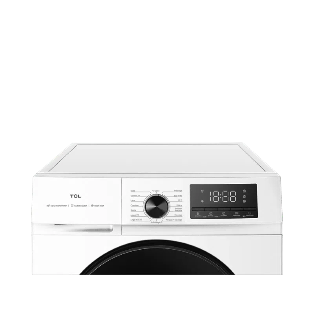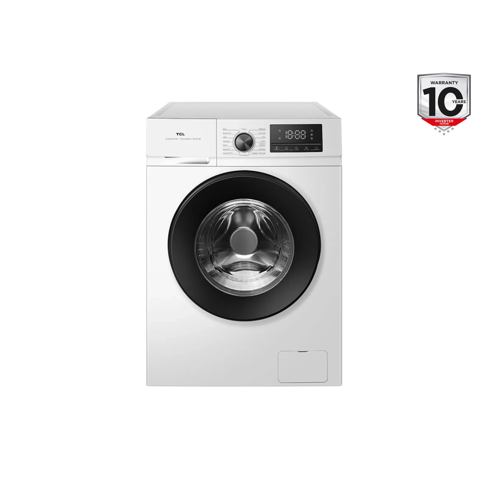 TCL Washing machine | FF1024WA2 | Energy efficiency class A-10% | Front loading | Washing capacity 10 kg | 1400 RPM | Depth 61 cm | Width 59.5 cm | Display | LED | Steam function | White