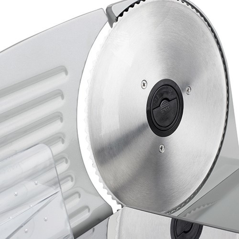 | Teised omadused | Folding table and removable pusher tool. Safety power switch. Slice thickness indicator. |