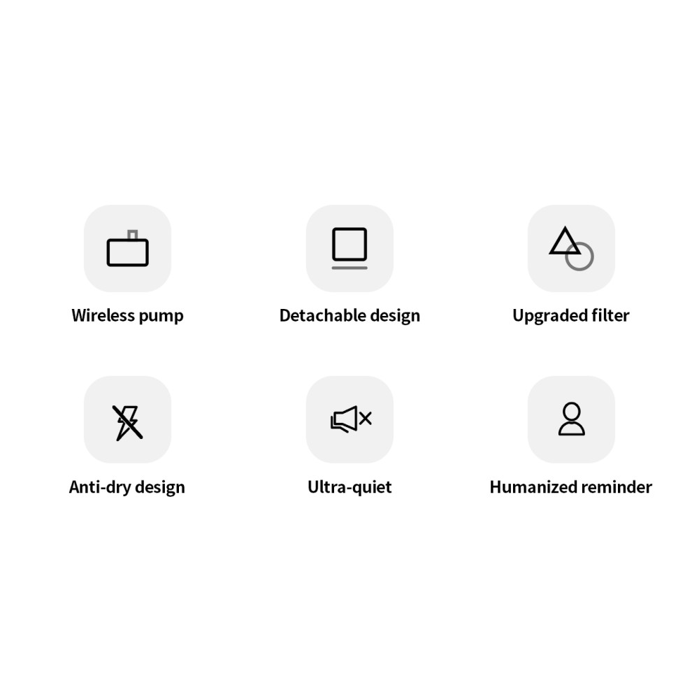 | Special features | Detachable design; Upgraded filter; Anti-dry design; Ultra-quiet; Humanized reminder |