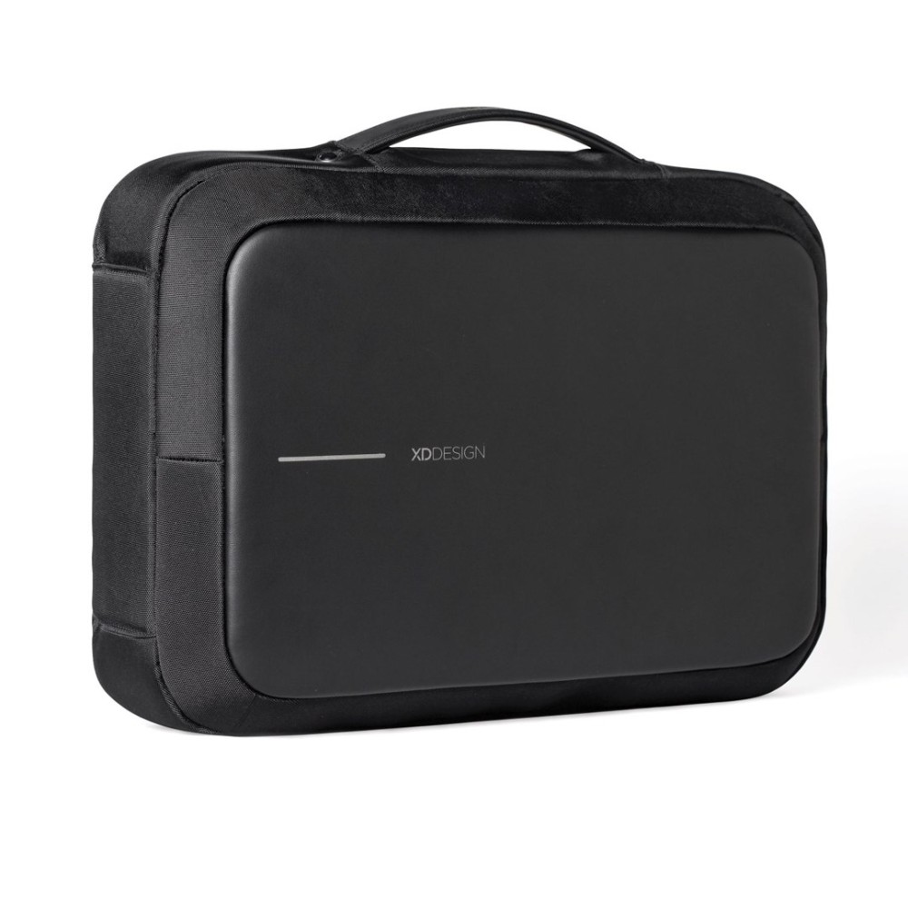 Opening angle of main compartment 180° , EVA foam back for comfort and ergonomics , Padded tablet compartment up to 12.9", Anti-theft design with hidden zipper, Padded laptop compartment, Organizational panel, Fixing system on the telescopic handle of larger luggage, Adjustable and padded braces that can be concealed, Snap hook with combination and steel reinforced cord for fastening , Dual functionality: backpack or bag / briefcase , Waterproof material, Made from recycled materials each Bobby Bizz 2.0 reuses 47 plastic bottles , Cut-resistant material |