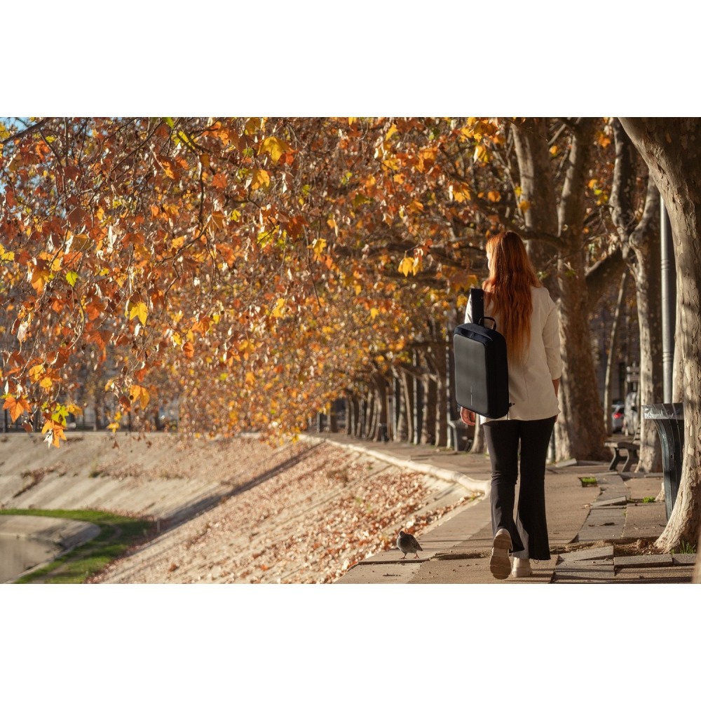 Anti-theft design with hidden zipper, Cut-resistant material , Opening angle of main compartment 180° , EVA foam back for comfort and ergonomics , Organizational panel, Fixing system on the telescopic handle of larger luggage, Adjustable and padded braces that can be concealed, Snap hook with combination and steel reinforced cord for fastening , Dual functionality: backpack or bag / briefcase , Waterproof material, Made from recycled materials each Bobby Bizz 2.0 reuses 47 plastic bottles , Padded tablet compartment up to 12.9", Padded laptop compartment |