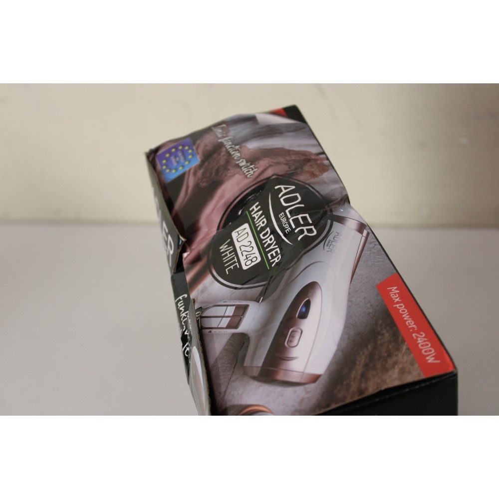 SALE OUT. Adler AD 2248 Hair Dryer, 2400 W, 2 speed settings, 3 temp settings, White | Adler Hair Dryer | AD 2248 | 2400 W | Number of temperature settings 3 | Ionic function | Diffuser nozzle | White | DAMAGED PACKAGING