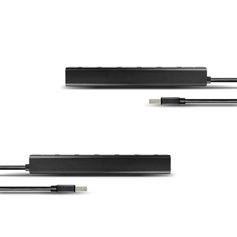 | Description | The seven-port AXAGON HUE-SA7BP ALU CHARGING USB 3.0 hub with own power and fast charging support on all USB ports. A compact hub with a durable aluminum case connects up to seven USB devices to your PC simultaneously. At the same time you can charge mobile phones/tablets/power banks and other devices up to 2A in any hub port thanks to the USB Battery Charging 1.2 support. It can handle permanent connection of several external disks even without the own hub power. With its own power it connects up to four 2.5" magnetic external disks. The USB ports located across the hub body with sufficient spacing ensure seamless direct connection of large USB devices. A permanently attached USB cable with a sufficient length of 40 cm is ideal for use with laptops. It can also work as a separate charging hub and charge the USB devices from the power adapter even when the PC is turned off or disconnected. The compact power adapter 5V/2A is included. Features: • 7 downstream USB 3.0 ports with enough space around the connectors. • an upstream USB 3.0 port with USB 3.0 Type A male connector on a 40 cm long permanently attached cable. • Compatible with USB 3.0 and backward compatible with USB 2.0 and USB 1.1. • Supports transmission rates 1.5 / 12 / 480 / 5000 Mb/s (low / full / high / super speed). • Supports USB Battery Charging v 1.2 specification. • Each hub port can be used to charge up to 2A. • Possibility to connect your device while running thanks to the Hot Plug support. • Full Plug and Play support. • LED indication of hub connection to power supply. • Current overload detection and protection. • Hub dimensions 156 x 30 x 21 mm, AC adapter dimensions 29 x 75 x 80 mm, including fork. • Hub weight 88 g (incl. cable), AC adapter weight 100 g (incl. cable). The hub power mode via USB cable (bus power): • The USB bus power is sufficient to connect the USB device with a low power consumption (mouse, keyboard, card reader, flash disk, etc.) or own power supply (printer, scanner, 3.5" external disk) to all seven ports. • In this power mode, the USB hub is also able to cope with up to two, or three if connected sequentially, magnetic 2.5" external disks simultaneously. • Charging of mobile devices (except for iPads) is also possible in this power mode, however, the charging current is only 0.9A. Own hub power mode via the included power adapter (self power): • Own power supply via the included AC/DC adapter (input: 100-240V~, 50/60Hz, 0.45A, output: 5V-2A / 10W, two-pin Euro fork, output coaxial connector diameter 3.5/1.3 mm, cable 150cm). • In this power mode, the USB hub is able to cope with four 2.5" magnetic external disks. However, we recommend that you connect max. three 2.5" magnetic external disks simultaneously for reliable long-term hub operation. • Fast charging of mobile devices (including iPads) up to 2A in each of the hub ports. The total current supplied by the hub during charging is limited by the output current of the external power adapter to max. 2A. Independent charging hub mode without being connected to the PC (charging hub): • After turning off the connected PC or without being connected to the PC the hub works with power supply via the included AC/DC adapter as a separate charging USB hub. • Fast charging of mobile devices (including iPads) up to 2A in each of the hub ports. The total current supplied by the hub during charging is limited by the output current of the external power adapter to max. 2A. OS support: • MS Windows XP / Vista / 7 / 8 / 8.1 / 10 and later, Windows Server 2003 / 2008 / 2012 and later (supported are all 32 and 64-bit Windows OS versions), Mac OS X 10.4x and higher, Linux with kernel 2.6.x and above. • Note: Drivers are included with supported operating systems and are installed completely automatically. No other drivers need to be installed and are not even available. Package contains: • USB 3.0 hub with a permanently connected 40 cm long cable, • power adapter, • printed multilingual manual CZ / DE / DK / ENG / ESP / FIN / FR / GR / HR / HU / IT / NL / PL / PT / RO / RU / SK / SWE / TR / BG / CN / ARA, • packed in a cardboard box. |