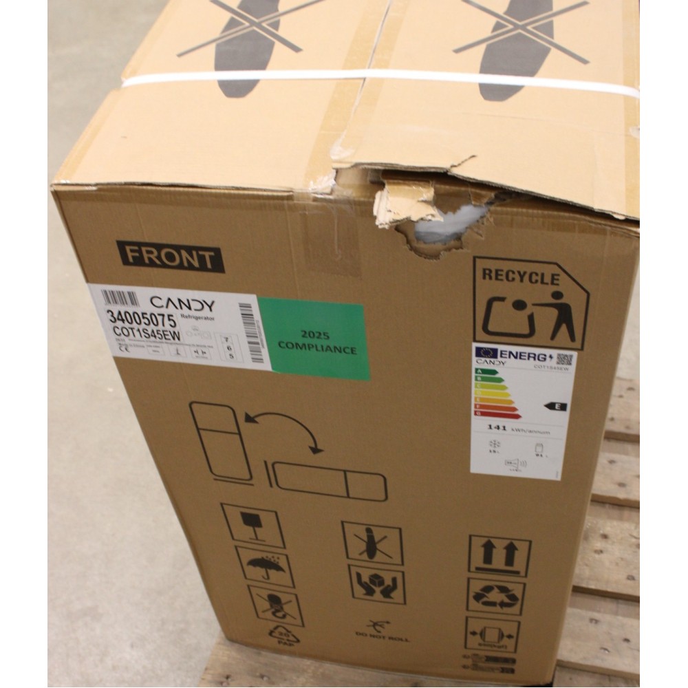 SALE OUT. Candy Refrigerator | COT1S45EW | Energy efficiency class E | Free standing | Larder | Height 84 cm | Fridge net capacity 91 L | Freezer net capacity 15 L | 39 dB | White | DAMAGED PACKAGING, DENT ON FRONT DOOR