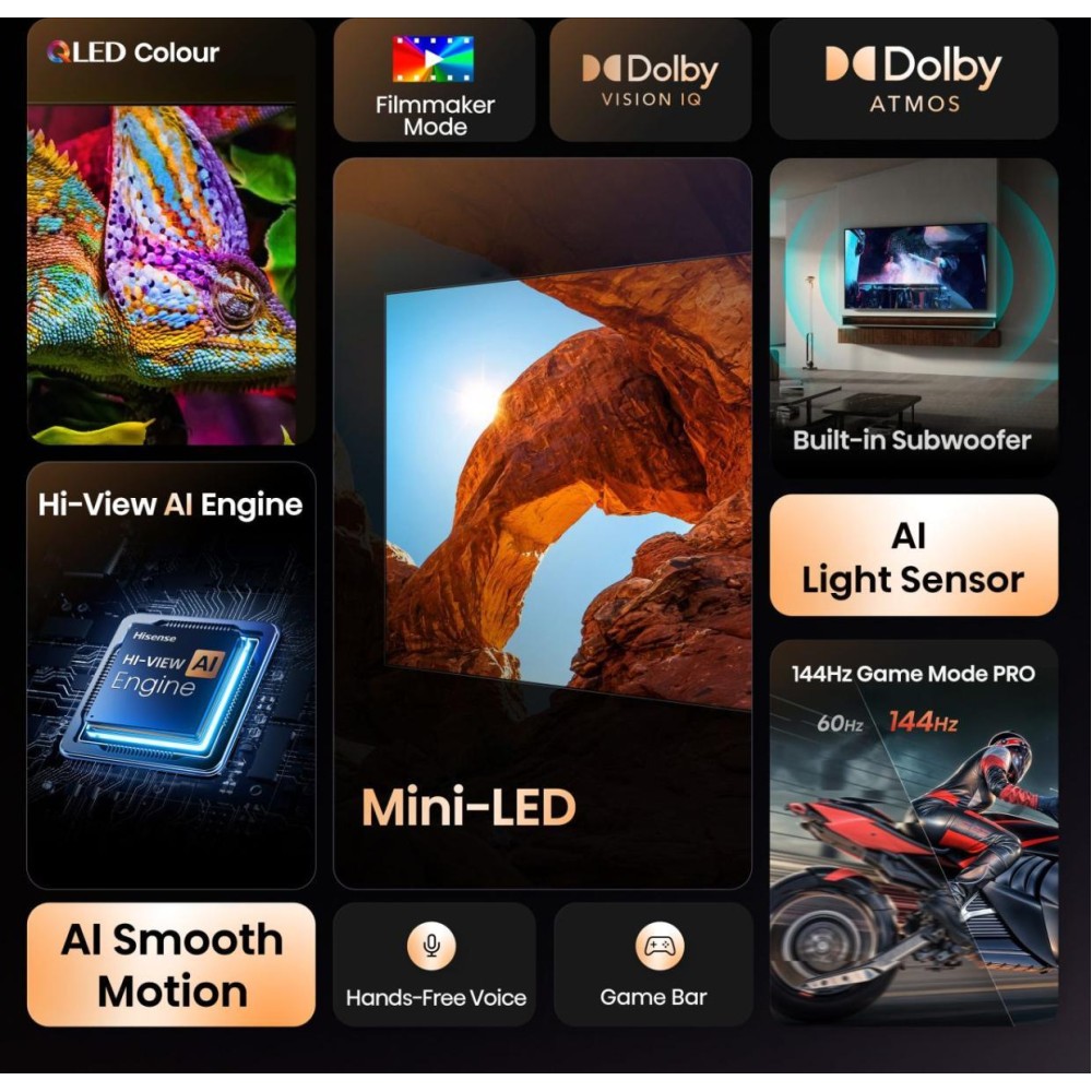 | Технологии Hisense (Аудио/Видео/Телевидение) | Dolby VisionT/Quantum Dot Colour |