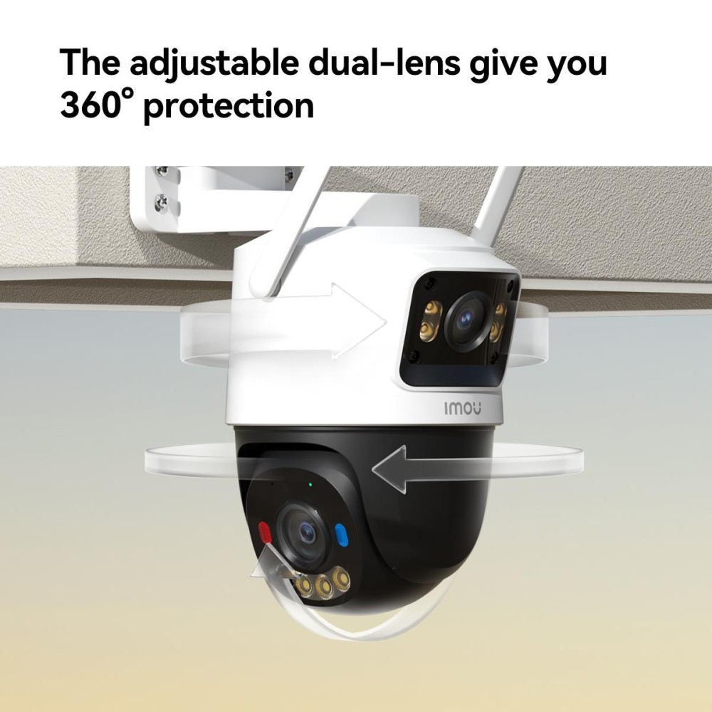 Cruiser Dual 2C 4G's PT lens supports 0°-355° horizontal rotation and 0°-90° vertical rotation, while the fixed lens supports 260° horizontal rotation to protect your home 360°.