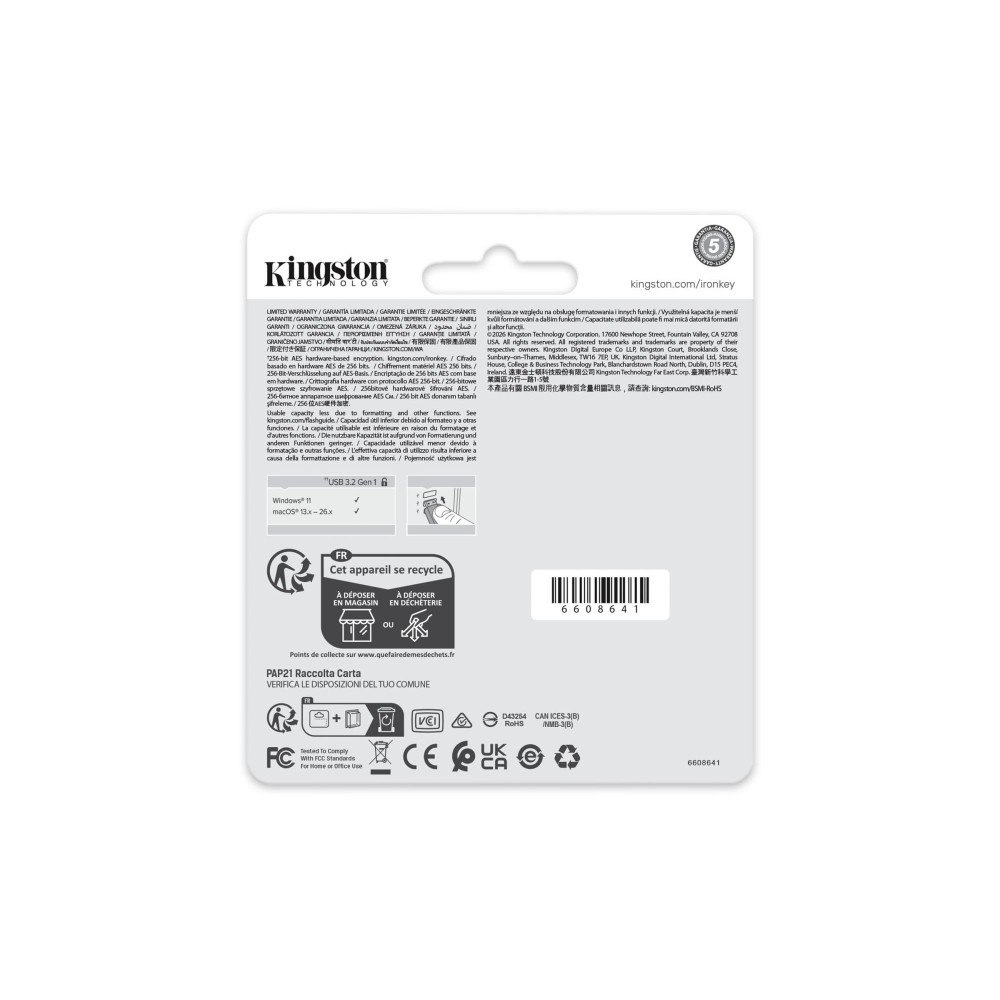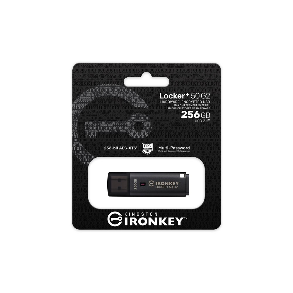 Kingston IronKey™ Locker+ 50 G2 USB Flash drive provides enterprise-grade security with FIPS 197 certified AES 256-bit hardware-encryption in XTS mode, including safeguards against BadUSB and brute force password attacks. LP50 G2 is also TAA compliant.