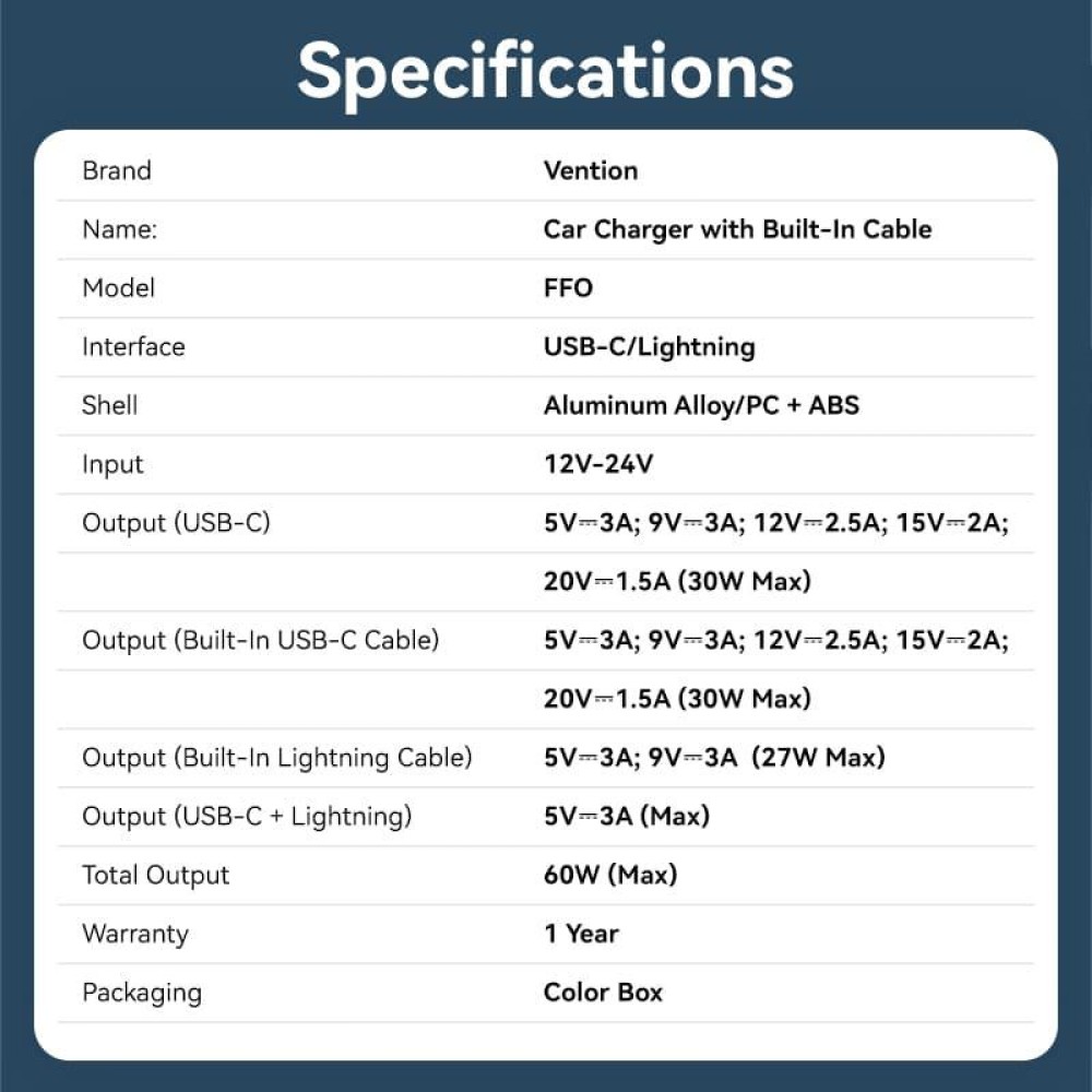 | Müüja koduleht | https://ventiontech.com/products/three-port-usb-c-usb-c-lightning-30w-30w-27w-car-charger-with-built-in-cable-black-aluminium-alloy-type?srsltid=AfmBOopDtkFljQZpEjSGtzteUN298UmjI9Rm_TNWiER3DdE4ytoLDIs6 |
