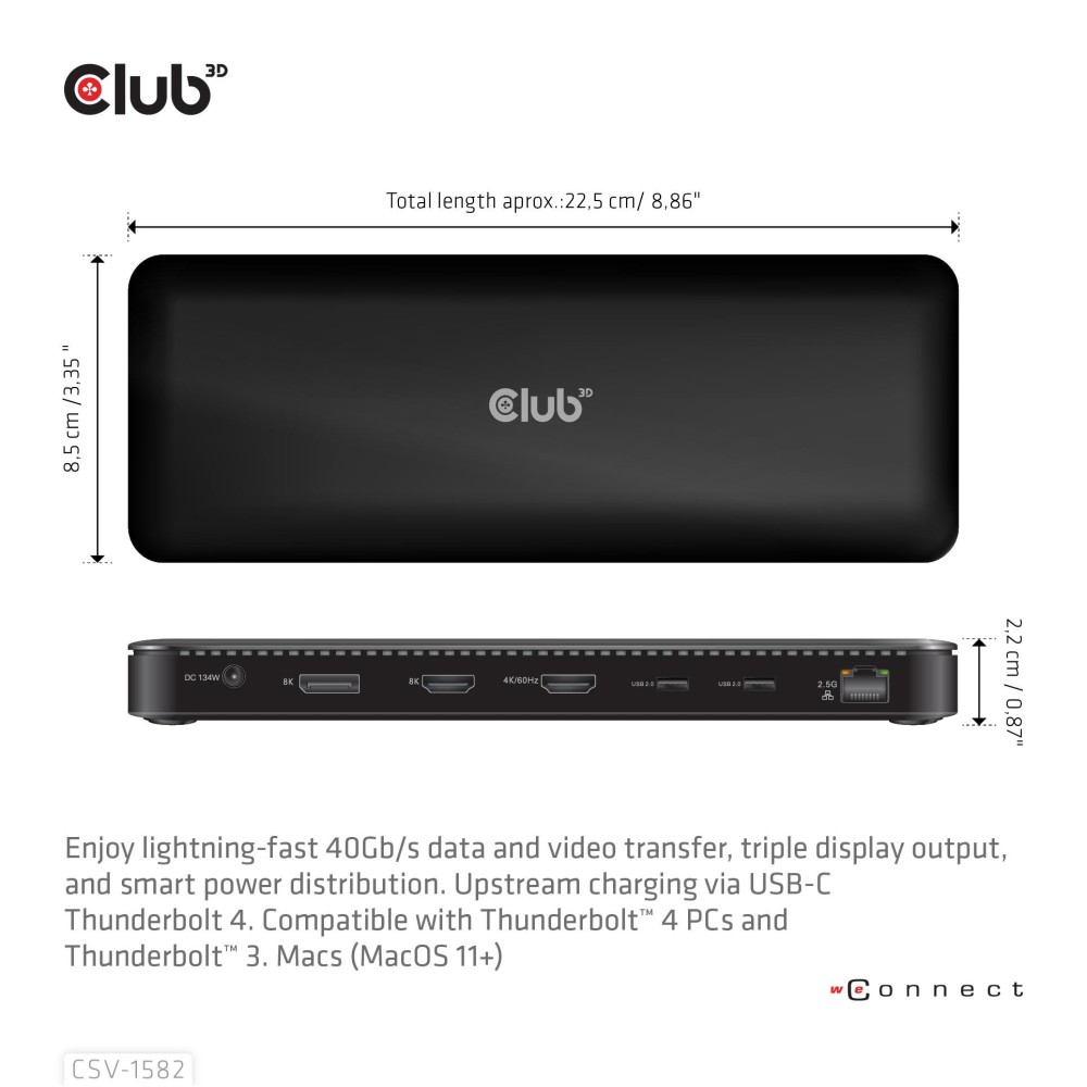 Features: • Adopting Goshen Ridge solution • Combining the TB4 features with the ease of an integrated dock, allowing you to output 3 Streams to 3 displays simultaneously with extended desktop displays on a TB4/USB4 Windows PC. • Slim compact aluminum design • Thunderbolt™ 4 Certified • Designed for Thunderbolt™ 4 based PCs and Thunderbolt™ 3/DP-Alt-mode based PC's and Macs™ utilizing MacOS™ 11 and later versions (Limitations can vary on different Apple proprietary Silicon). • Support Thunderbolt™ 4 max. 40Gbps for high speed data and outstanding video transfer, downward compatible with TB3, USB4, DP™ Alt mode, USB protocol • Allow to output single 8K30Hz, dual 4K/60Hz or triple (4K/60Hz*3) displays with extended desktop displays on Windows based systems • RJ45 supports 10M/100M/1000M/2.5G bandwidth • 1x Thunderbolt™ 4 downstream port, allow you to cascade Thunderbolt™ devices • Self-powered from DC power adapter with max 96W for host, max 134W for host and Dock • Support smart power which enables to flexibly distribute power to PC and Hub in real time according to the consumption of connected devices • Support TB4/USB4/TB3/DP-Alt-mode Hosts • Supports both the Kensington Anti-theft lock as well as the standard Nano Anti-theft lock(which uses Only 70% of the physical space)
