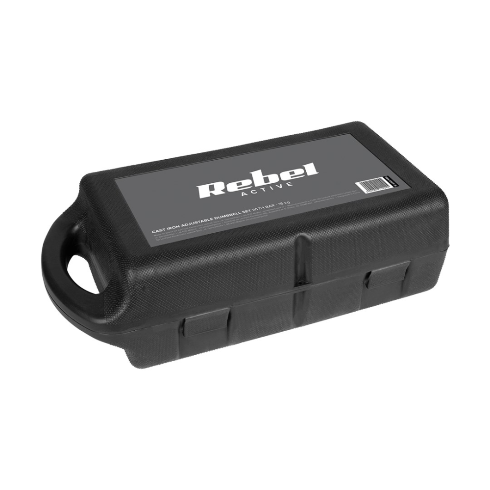 REBEL ACTIVE Adjustable dumbbells in a case 15 kg with a bar