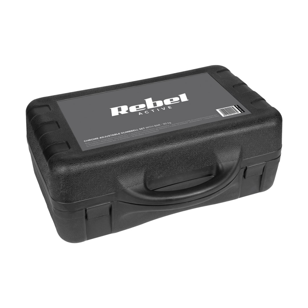 REBEL ACTIVE Chrome Adjustable Dumbbells in a Case 30 kg with Barbell