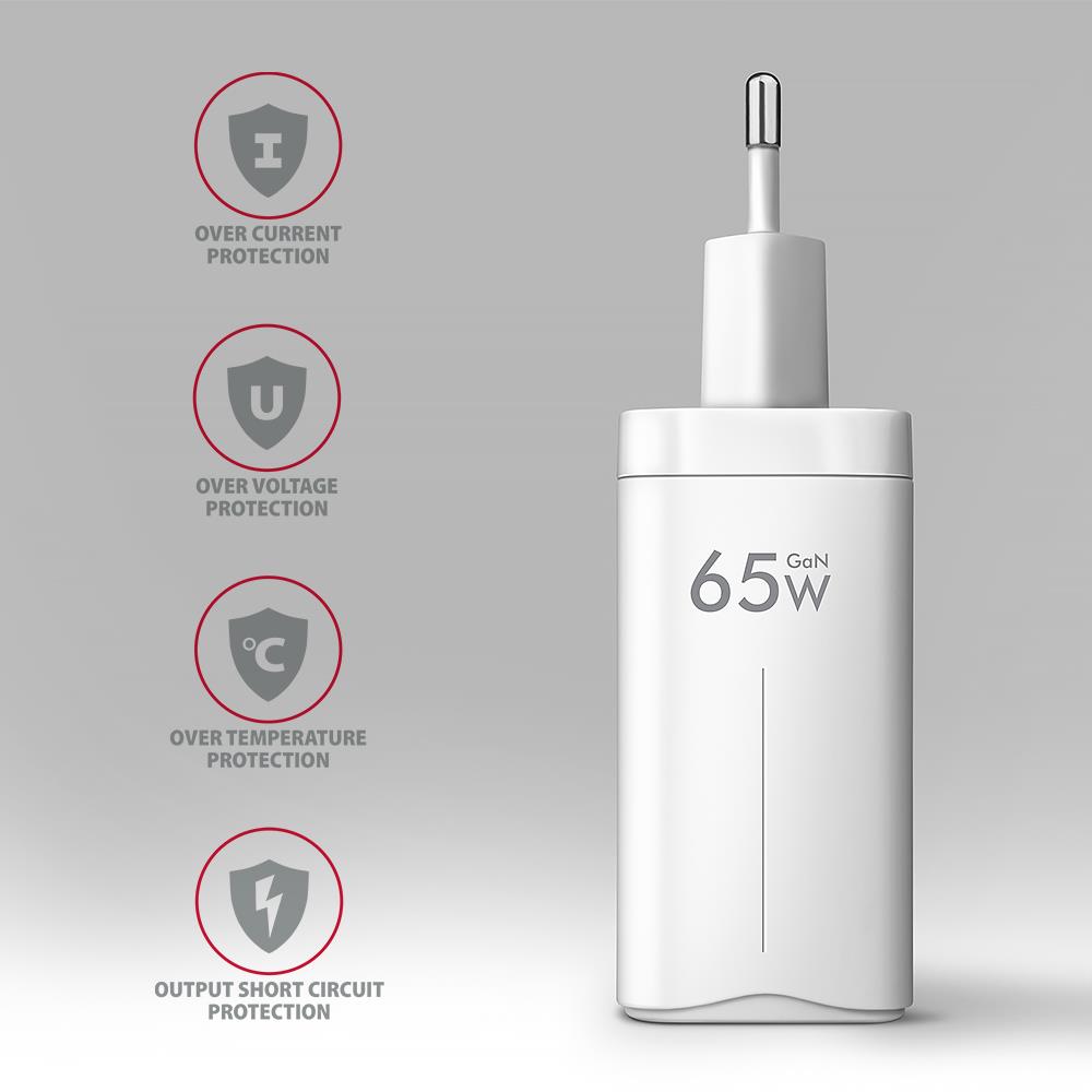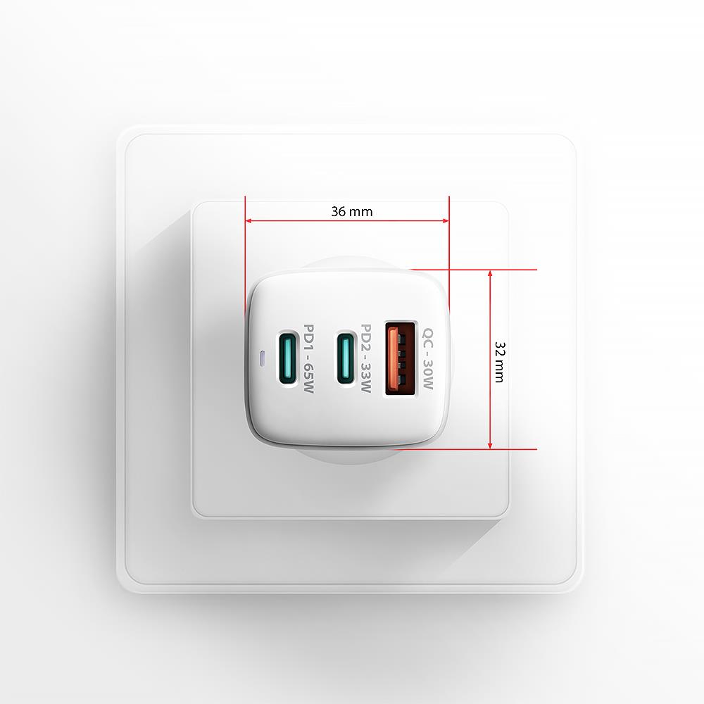 AXAGON ACU-DPQ65W GaN Wall charger 65W, 3x port (USB-A + dual USB-C), PD3.0/PPS/QC4+/Apple