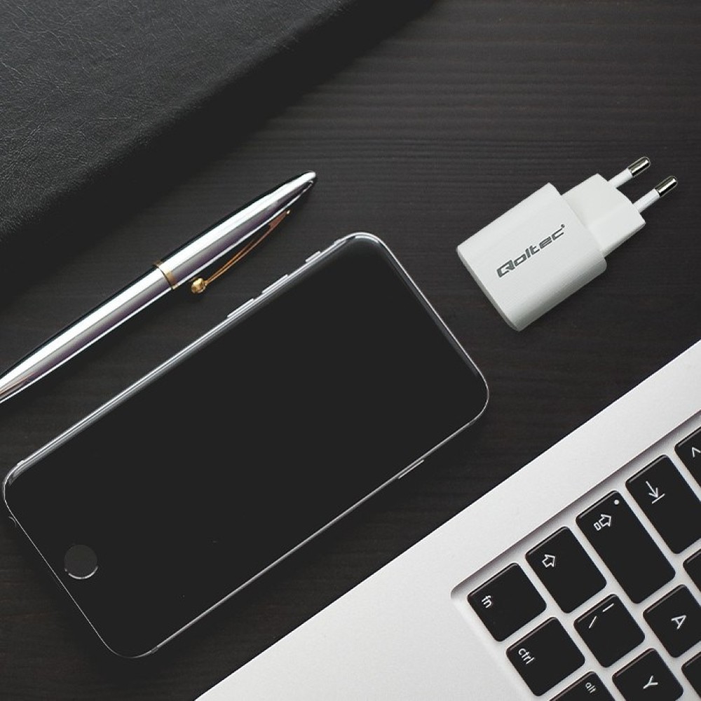 Qoltec 50763 mobile device charger Laptop, Portable gaming console, Power bank, Smartphone, Smartwatch, Tablet White AC Fast charging Indoor